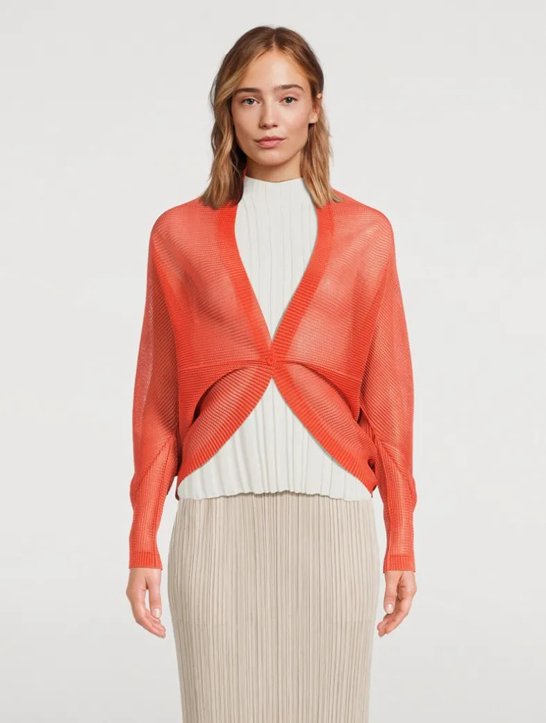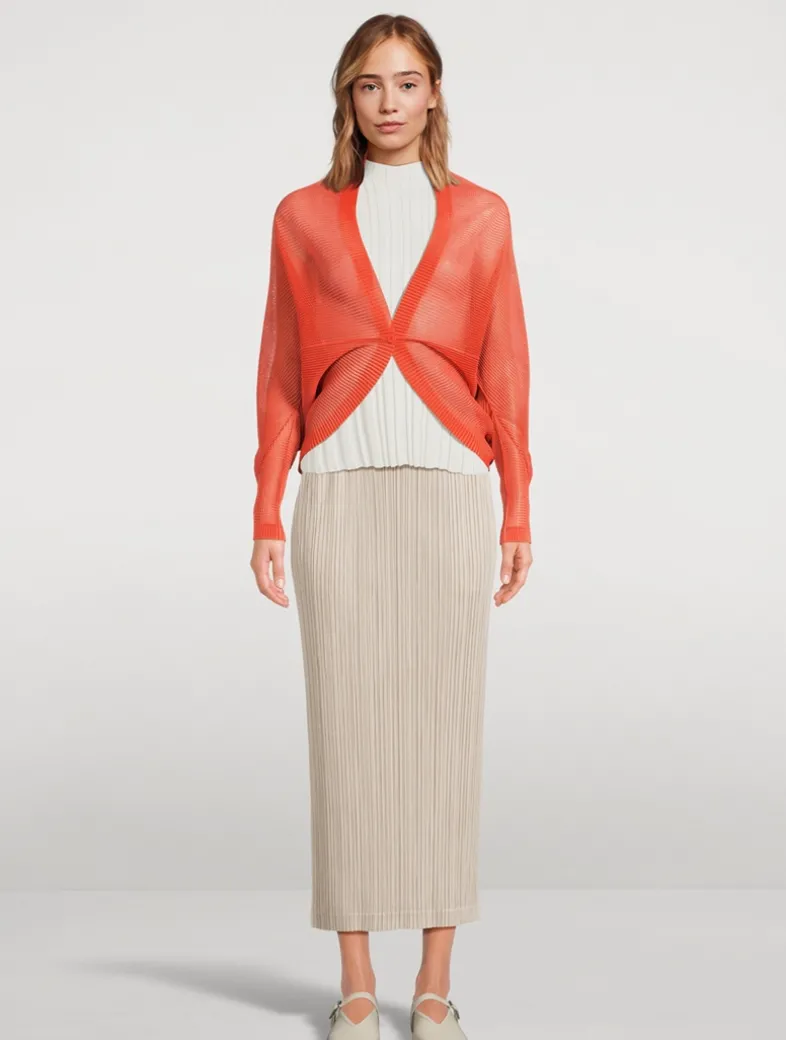 The July version of Pleats Please’s Monthly Colour collection is inspired by the strength and dynamism of a body leaping upward from the ground, and the earthy scent of soaring sand and soil. This short-sleeved pleated tunic has an A-line silhouette, a mock neckline, and side slits.