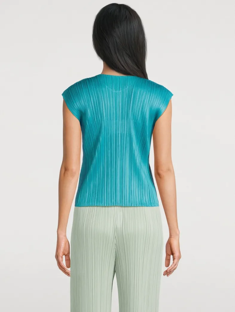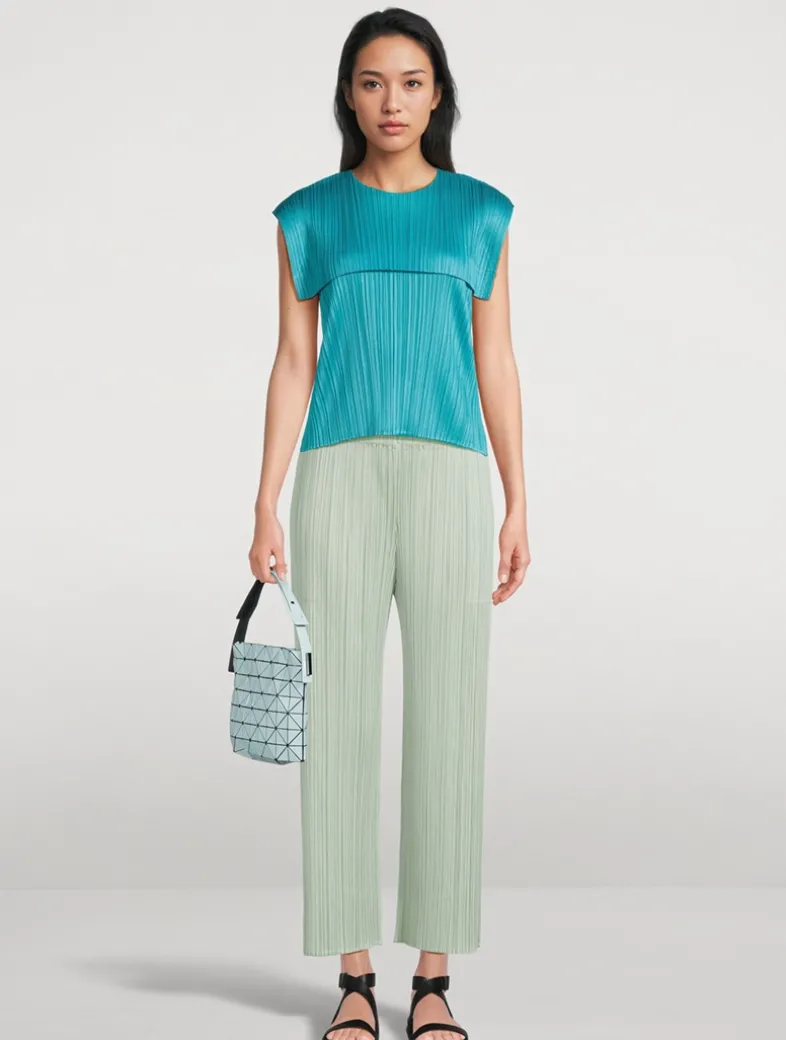 The June version of Pleats Please’s Monthly Colour collection features hues reminiscent of the gentle light of early summer. This roundneck tee has a cape-style detail at the shoulders.