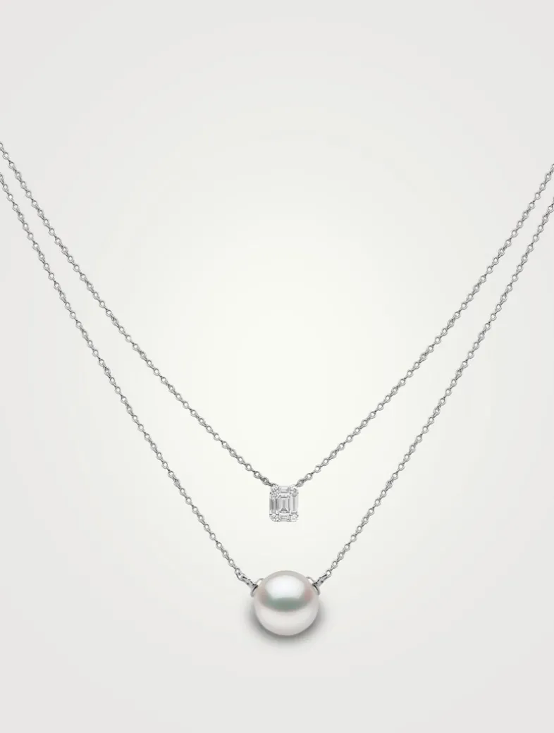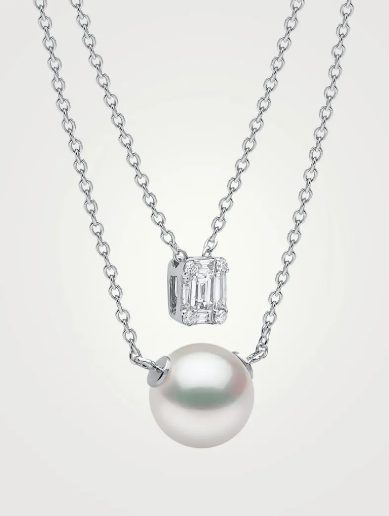 From the Moonlight collection. This layered chain necklace is set with a diamond pendant and an Akoya pearl.