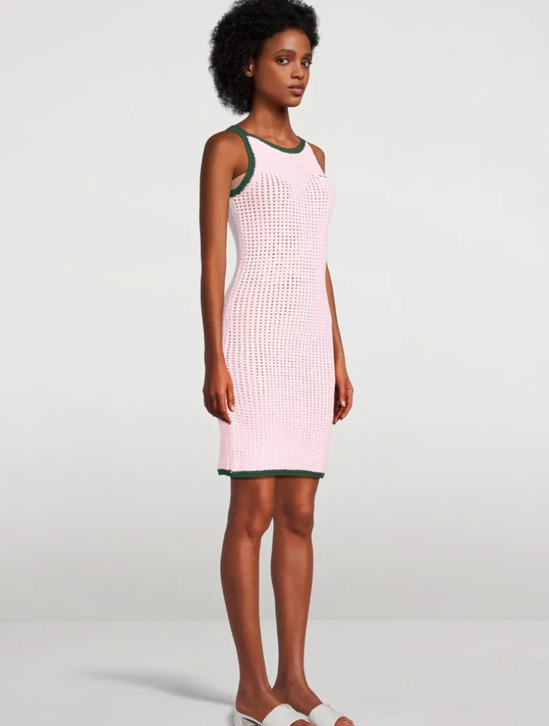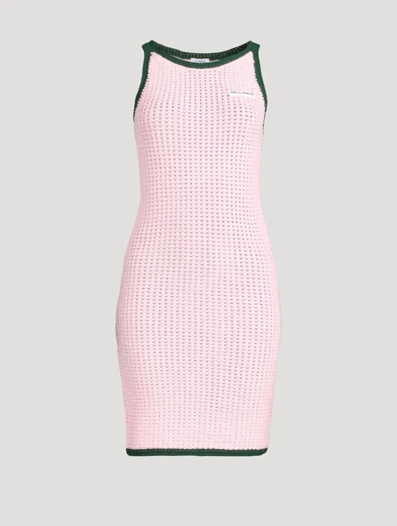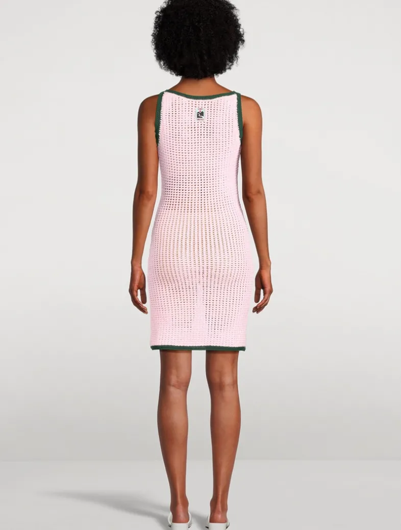 This tank dress is a fitted design crafted from mouliné cotton-blend fabric featuring the Casablanca logo. Completed with spaghetti straps and contrasting hem, collar, and armhole detail.