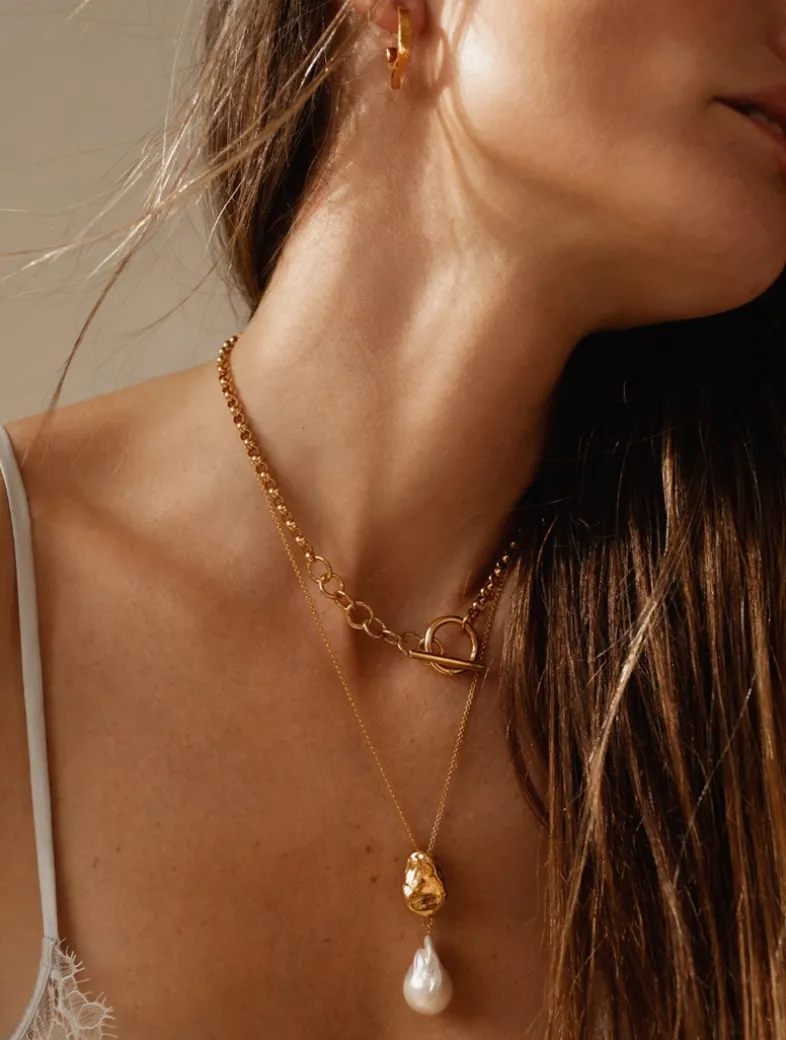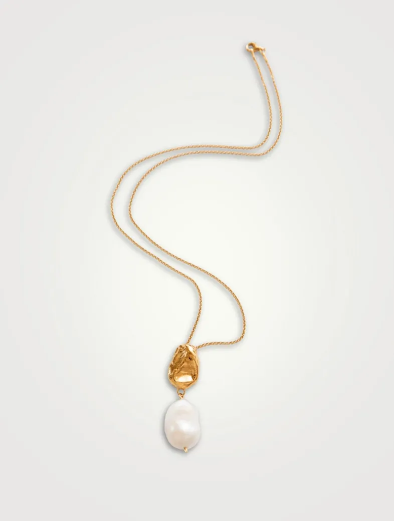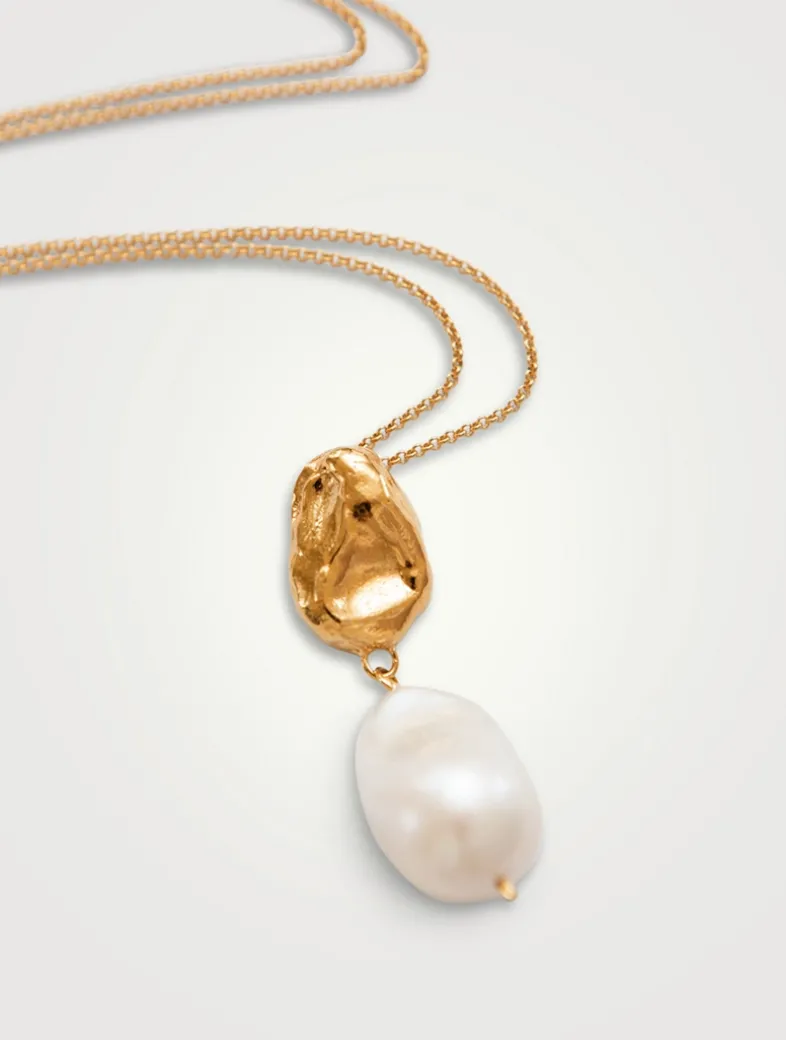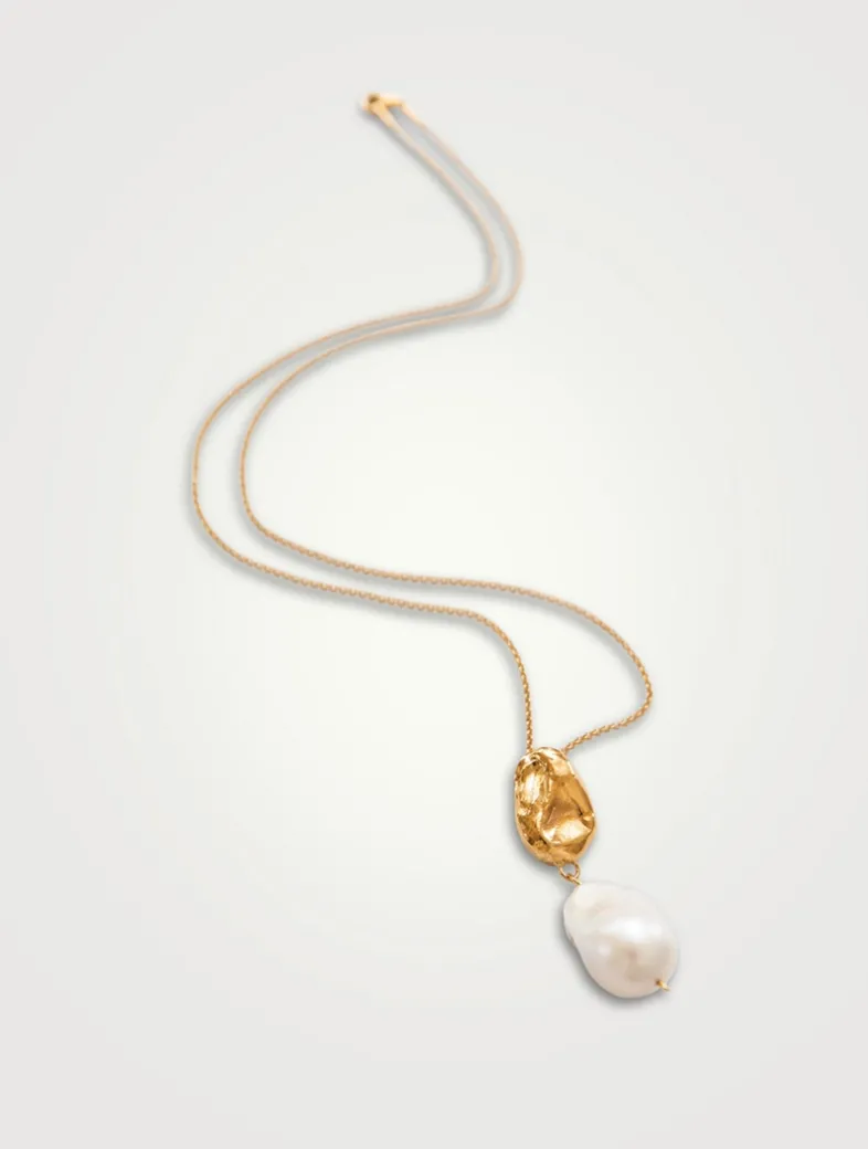 An ode to the stunning Terrazza dell’Infinito, known as the mountain pearl of the Amalfi Coast, where sea and sky unite. This lustrous heirloom invites us to embrace tranquility, mystery, and antiquity atop the ancient terrace overlooking the Gulf of Salerno. Featuring a textured, glossy pendant cast from wax, it anchors a lustrous freshwater baroque pearl. Designed and made in Canada