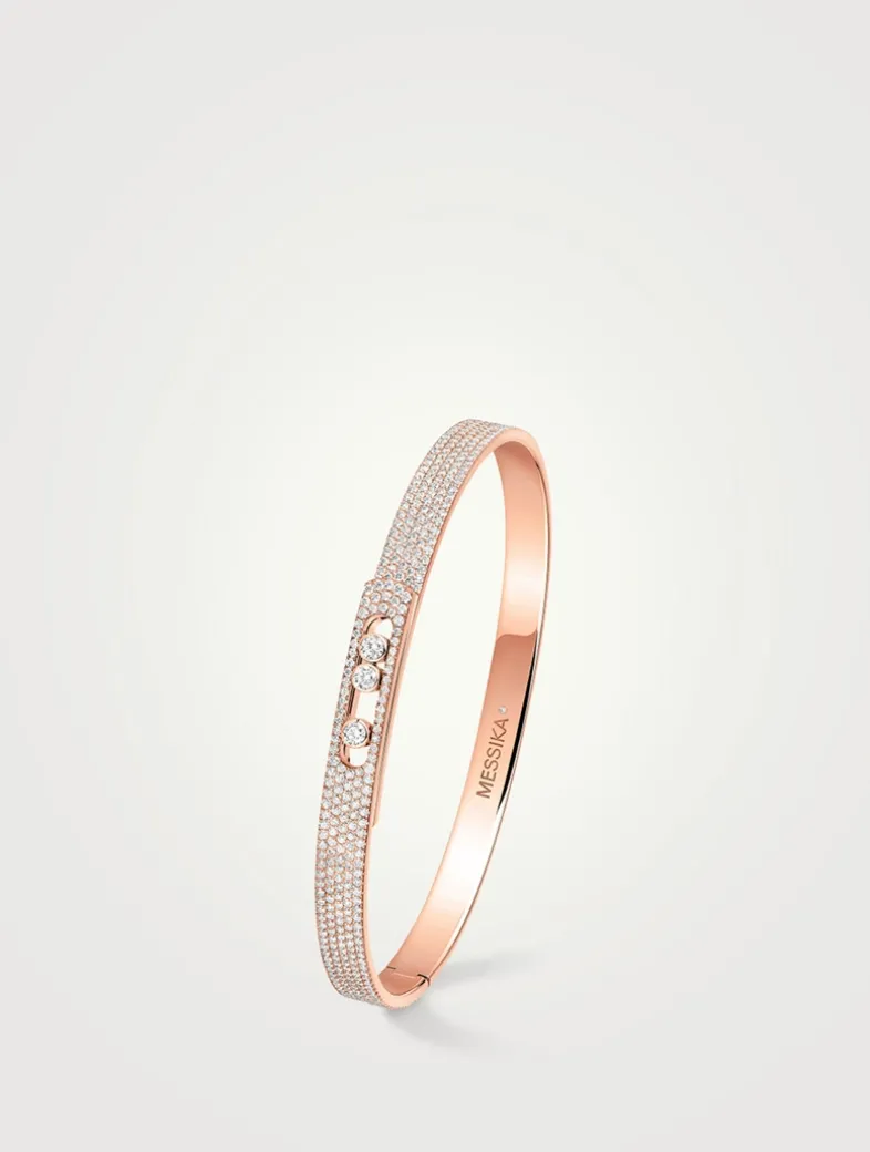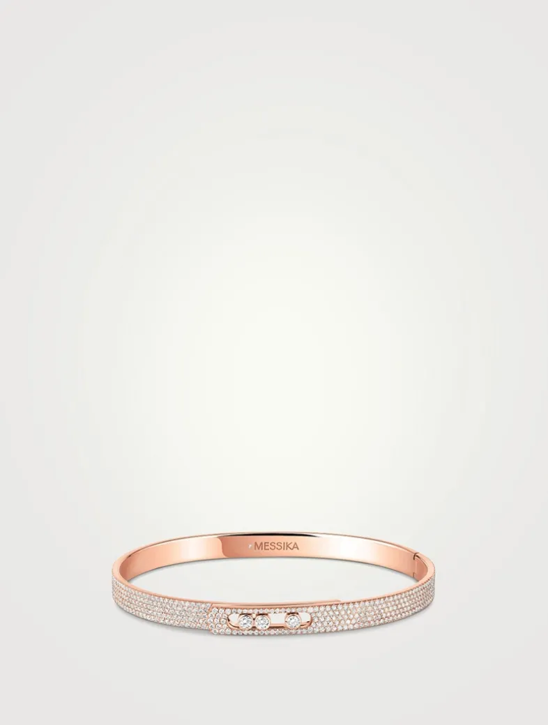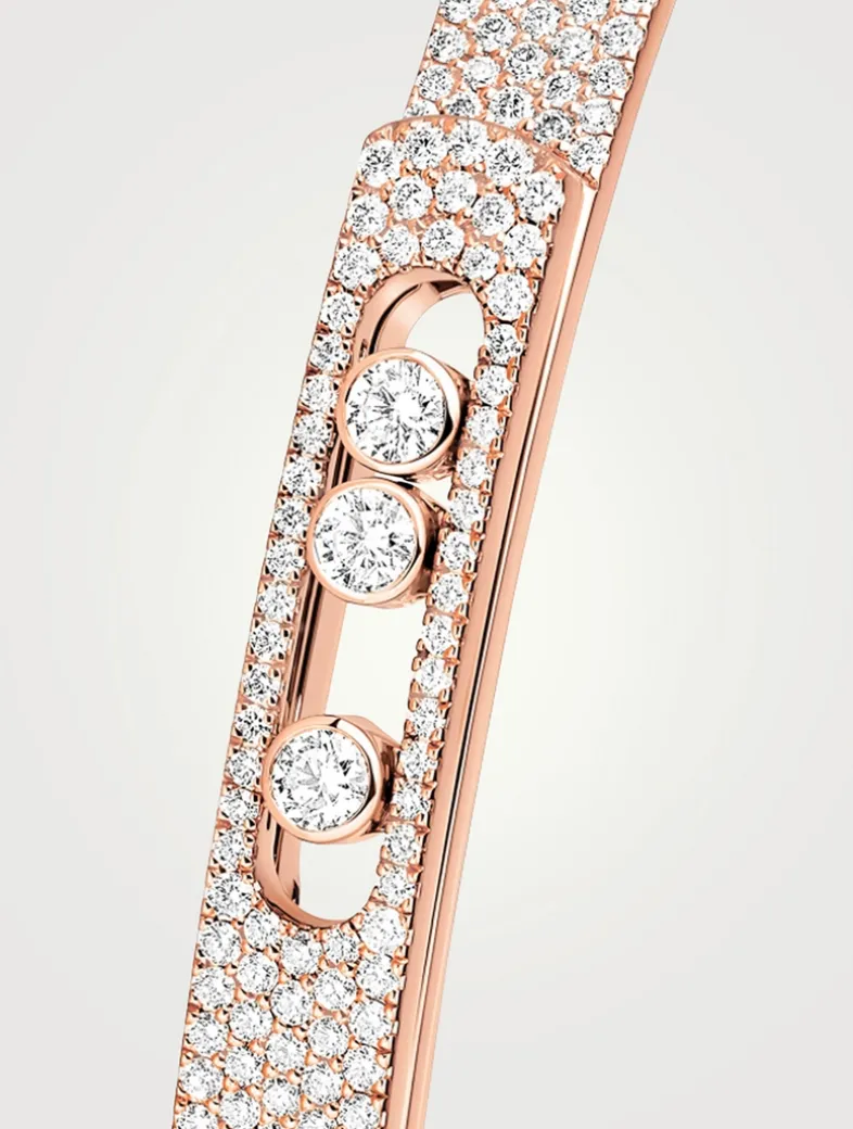 The famous Move Noa diamond bangle bracelet is now available in a refined, fully pavé version. A pure, shimmering line that rests on the skin and enhances the wrist with modernity, without ever overdoing it. Thanks to its integrated clasp, this iconic diamond bangle can be slipped on and off seamlessly. A highly desirable accessory that plays with contrasts: a piece of diamond jewellery that is both ultra-modern and classic, casual and chic, easy to wear yet a symbol of self-expression.