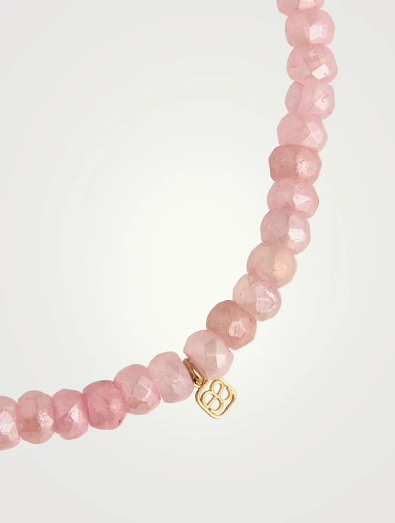 Strung with mystic pink grapolite beads, this slip-on bracelet features a pavé diamond wheel. All Sydney Evan beaded bracelets are strung on a stretch cord along with a 14k gold SE logo charm.