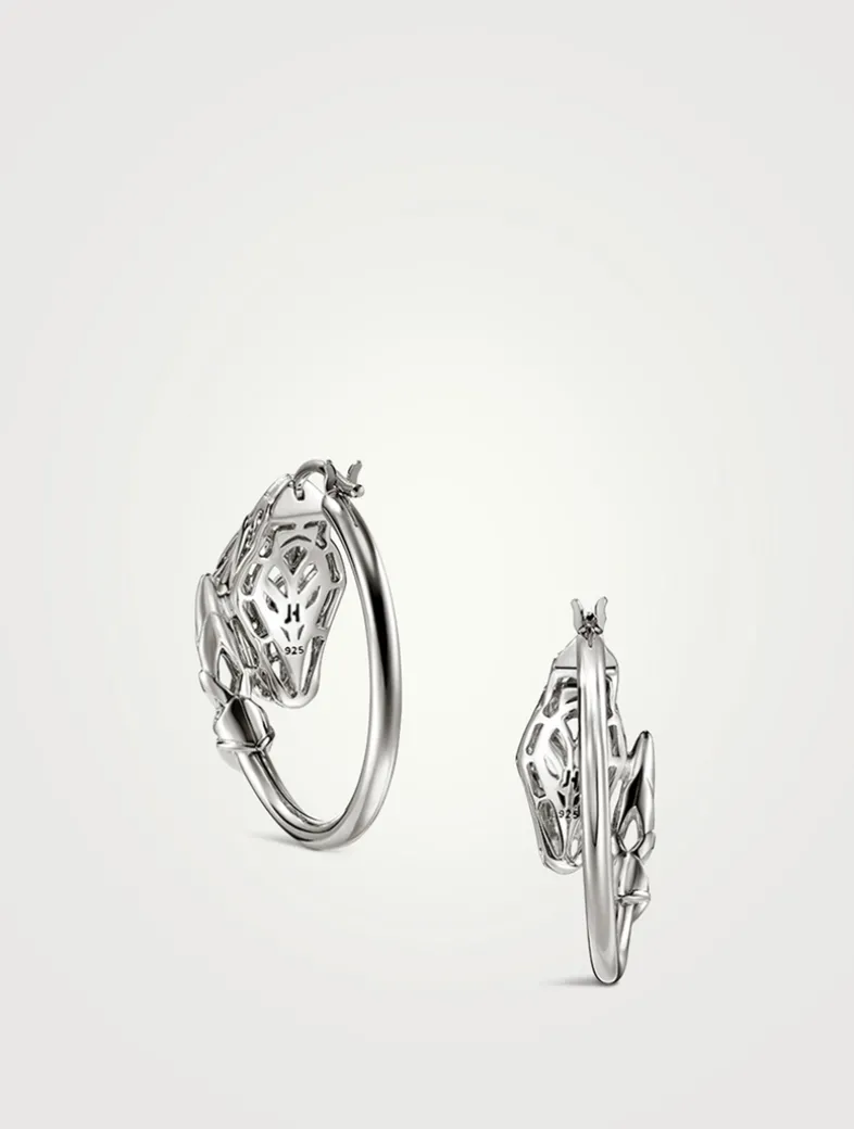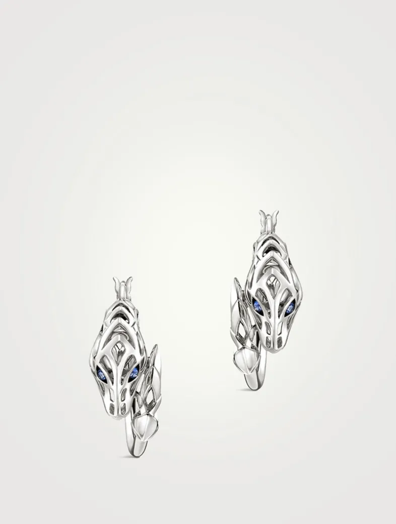 Artisan handcrafted in sterling silver with blue sapphire eyes, this pair of hoop earrings features John hardy’s hand-carved Naga dragon—a legendary symbol of love, protection, and prosperity.