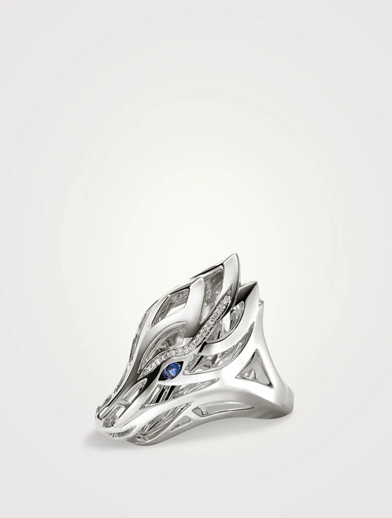 Naga Sterling Silver Ring With Blue Sapphire And Pavé Diamonds