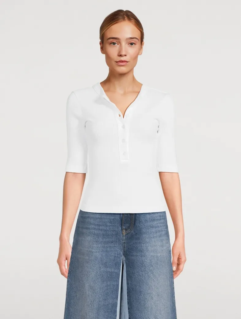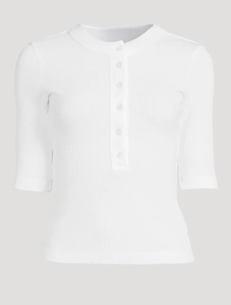 Designed from a form-fitting rib, this versatile Henley can be worn fully buttoned or undone for a more relaxed look. Crafted from an organic cotton blend with the softest hand.
