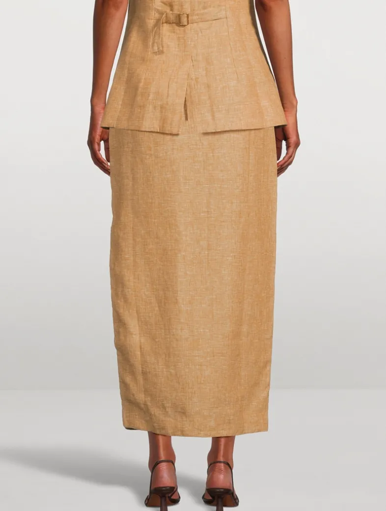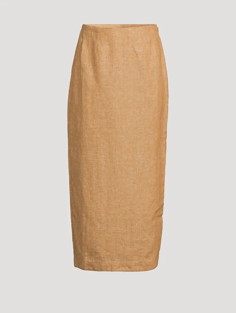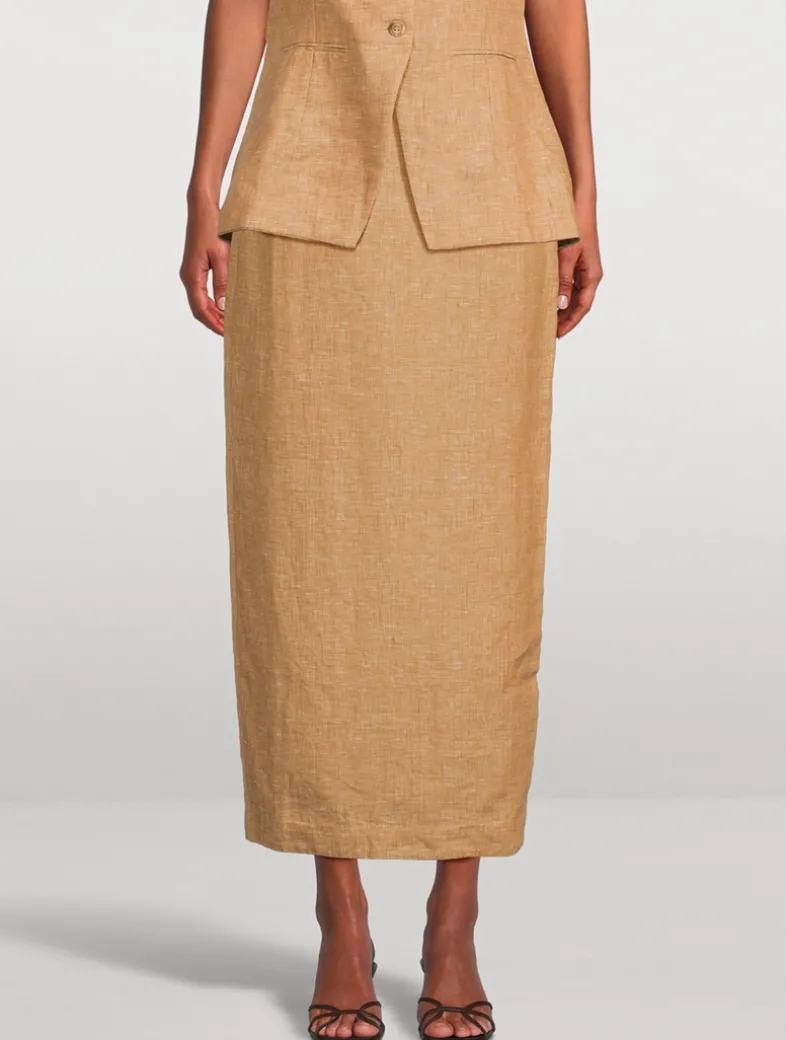 Crafted from 100% OEKO-TEX 100 certified and EU certified flax linen in an exclusive POSSE handloom, the Nancy Skirt is designed in a classic pencil silhouette. Featuring a high-rise waist, it falls to an elegant maxi hem and has a statement split at the side to allow for movement.