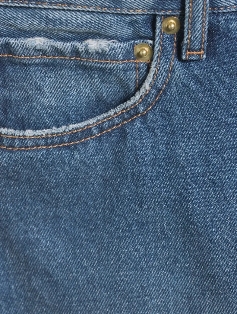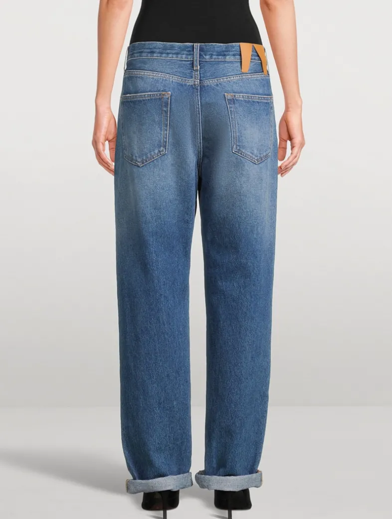 These slouchy jeans have a borrowed-from-the-boys straight-leg fit. They are cut to sit low on the waist with a classic five-pocket construction. They are embellished with beaded chain detailing hanging from the belt loops.