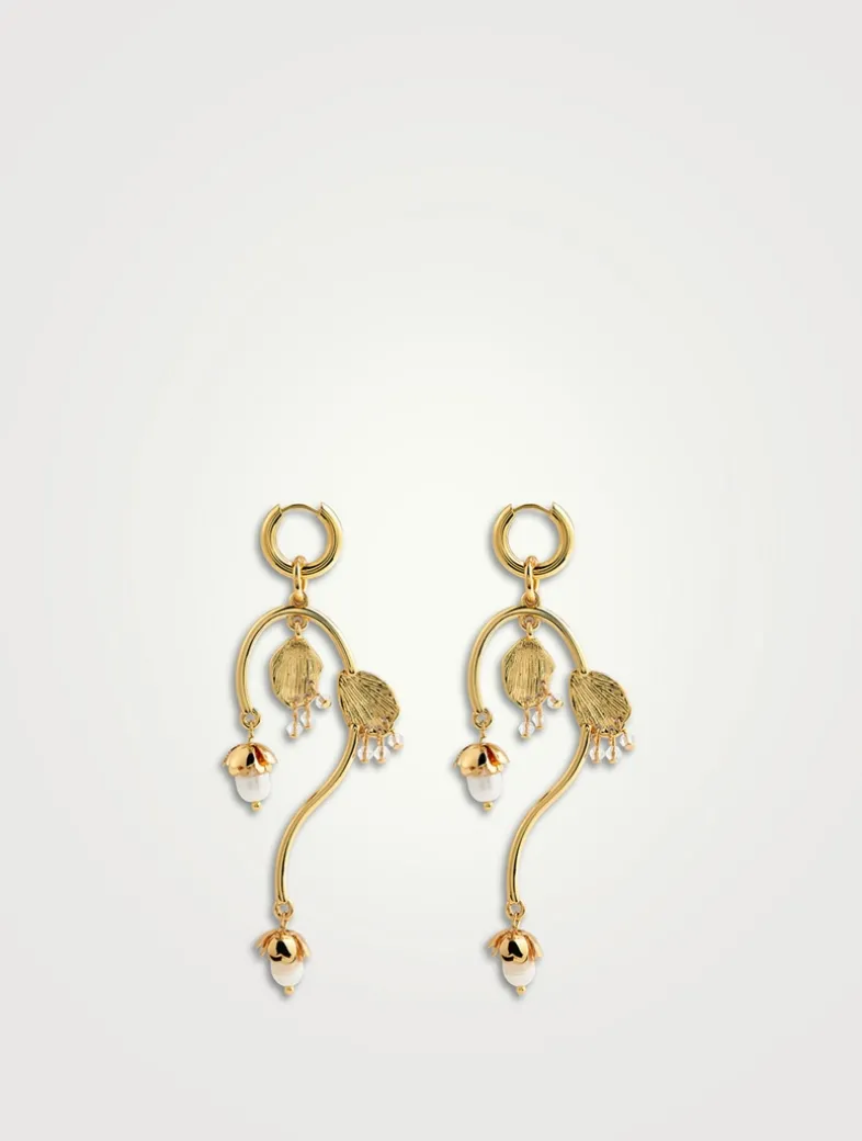 Set on the brand’s Lana huggie hoops, these earrings are adorned with dangling flower vine charms with pearls.