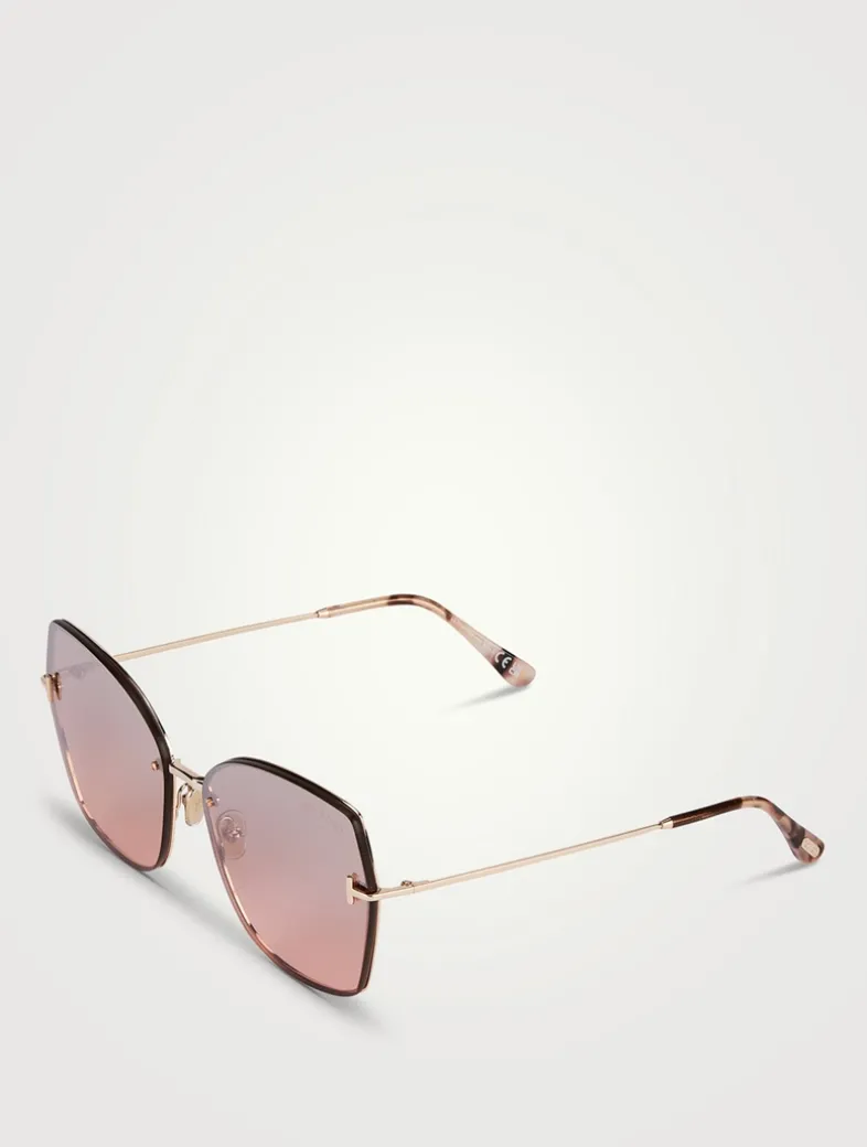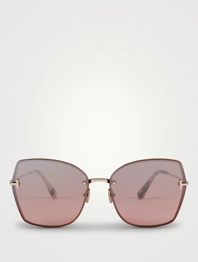 Made in Italy, these sunglasses feature oversized butterfly-style lenses that sit flush with the metal frame. Adorned with signature T inlays extending along the temples.