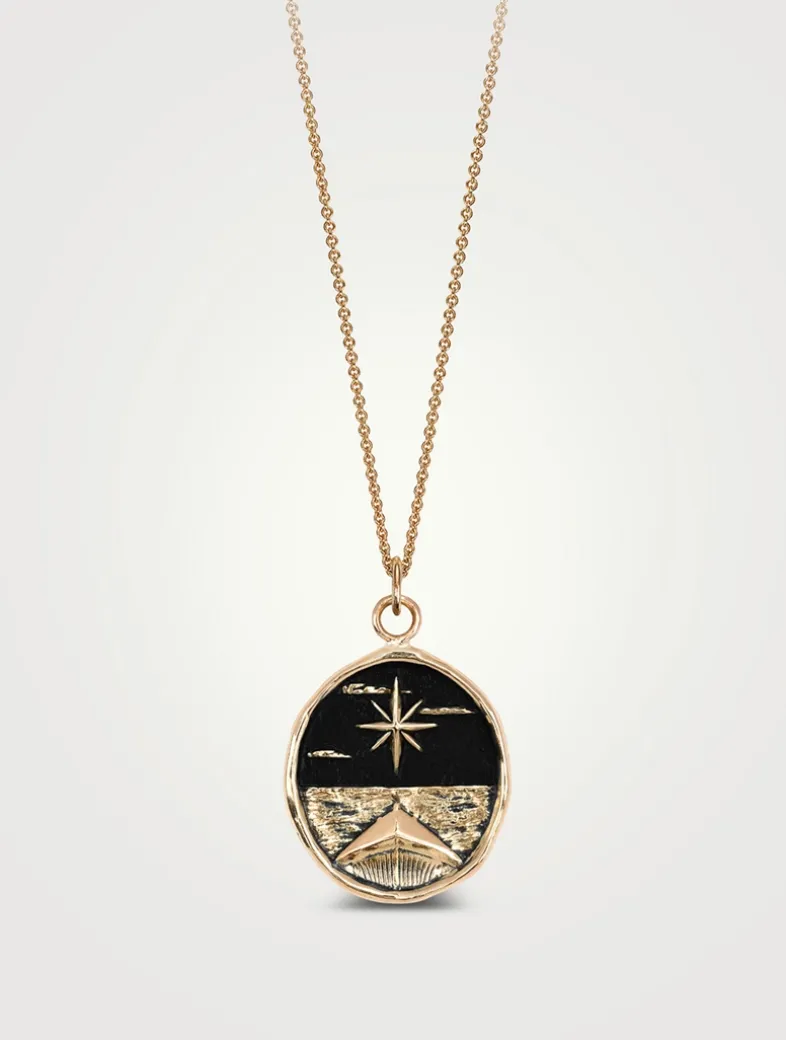 Cast in 100% recycled 14k gold, this talisman necklace features the bow of a boat pointing toward the North Star—a symbol of guidance and the pursuit of one’s true calling, and a reminder to navigate life with purpose and clarity. Handcrafted in Vancouver, Canada.