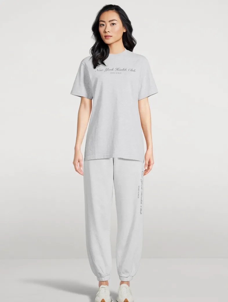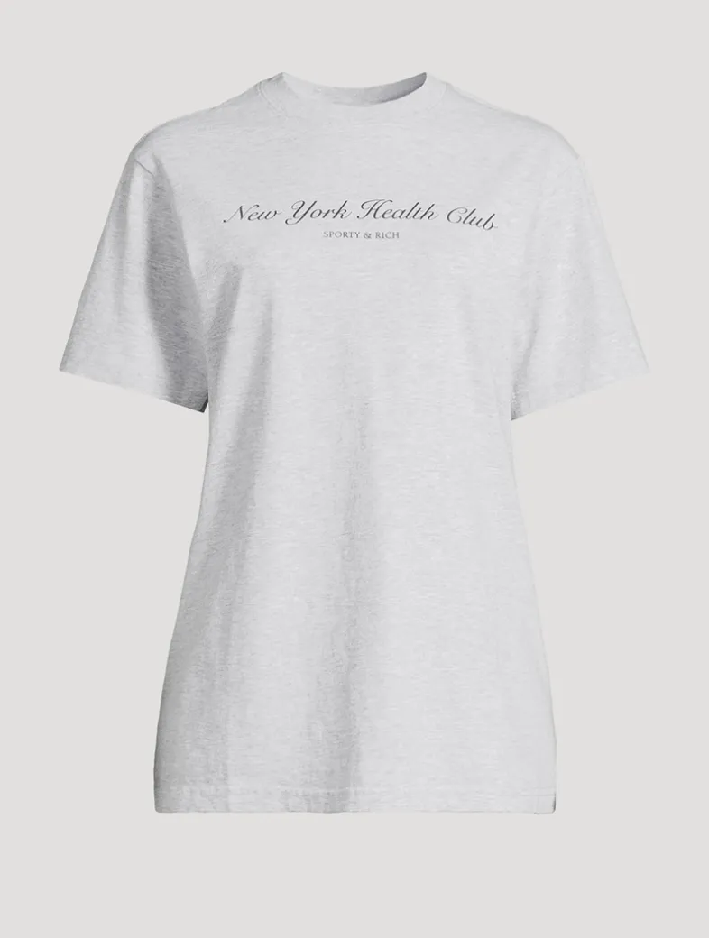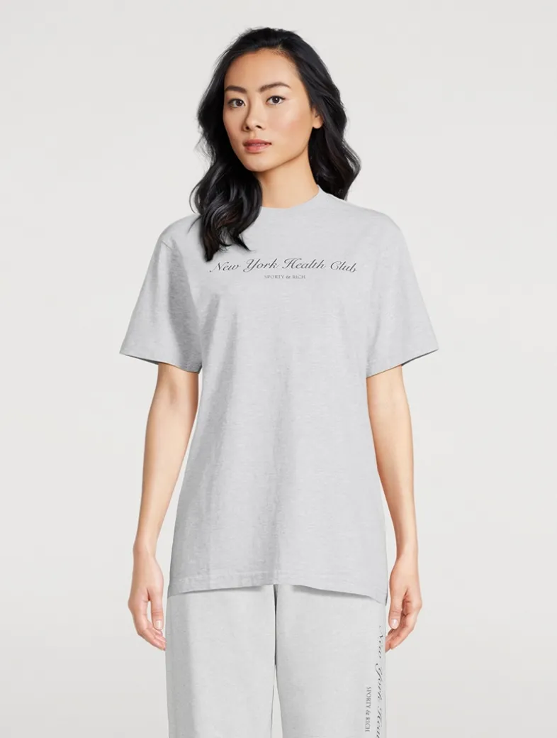 Constructed of 100% cotton and made in Portugal, this T-shirt is pre-shrunk with a slightly oversized fit. It’s designed with a crew neckline, short sleeves, and a New York Health Club graphic at the chest.