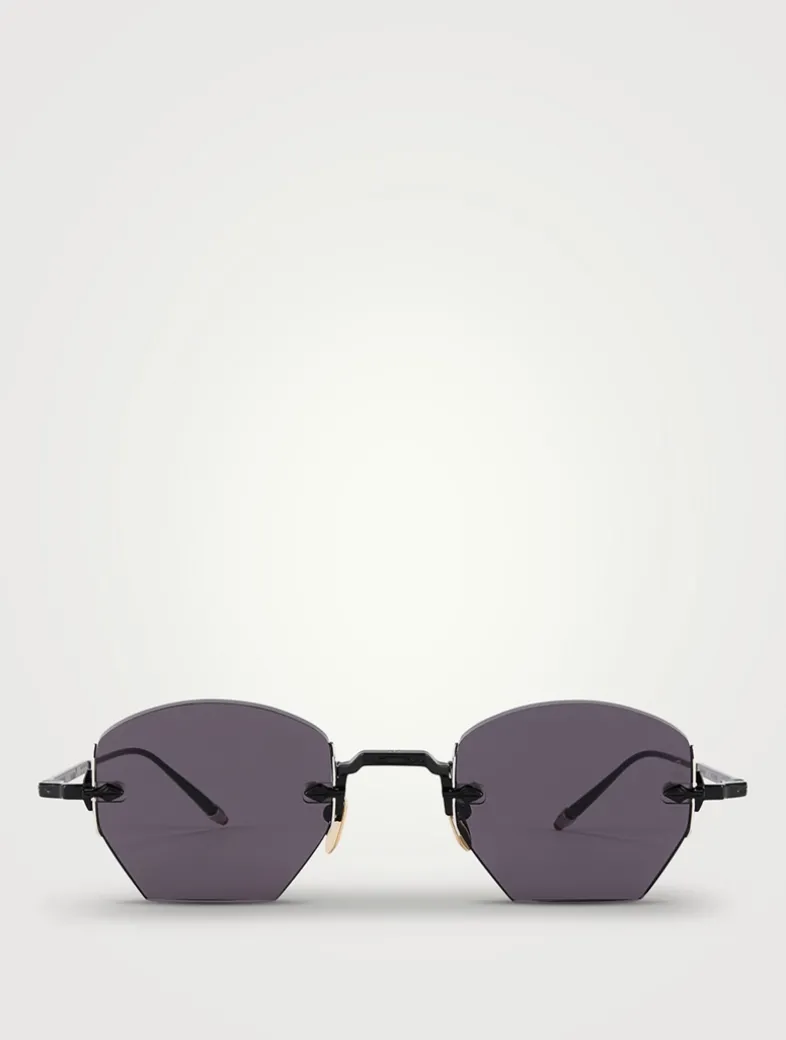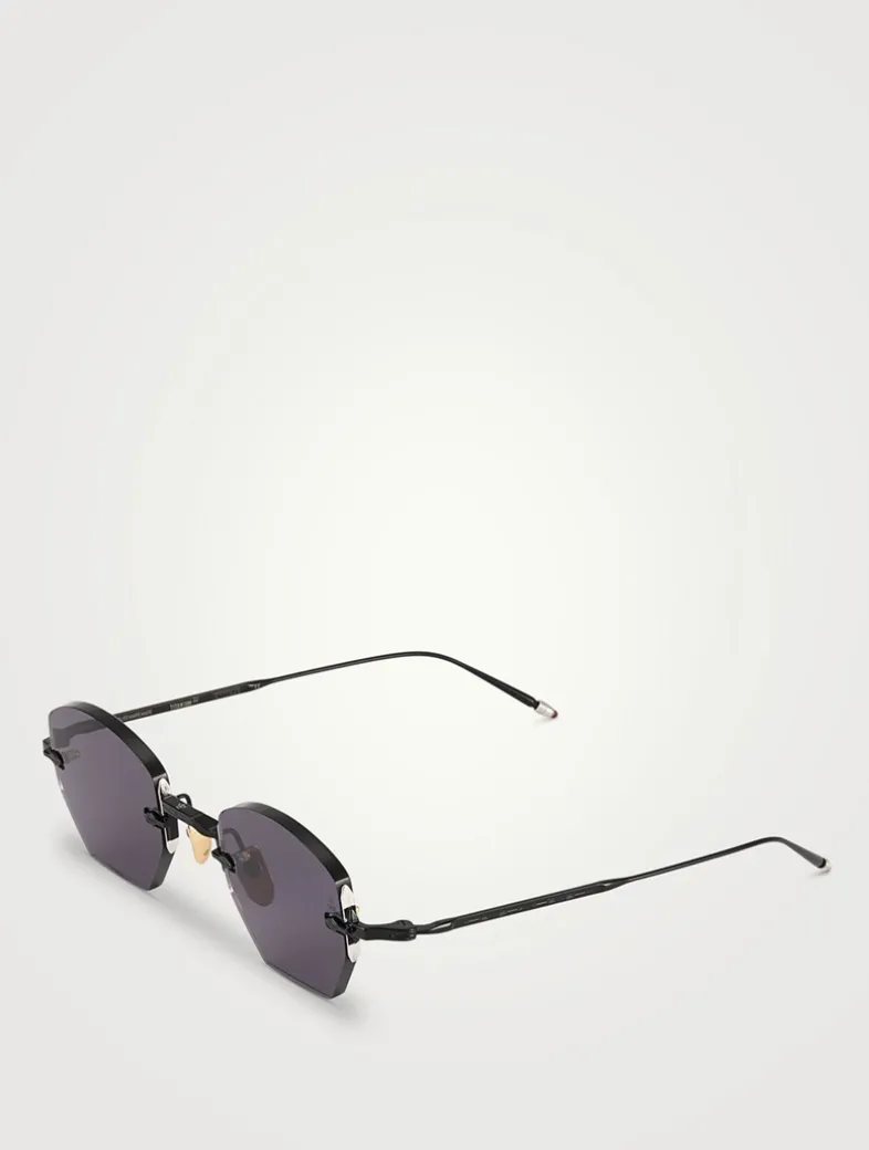 Crafted with a rimless frame, these unique hexagonal glasses feature contrasting angles and hand-painted