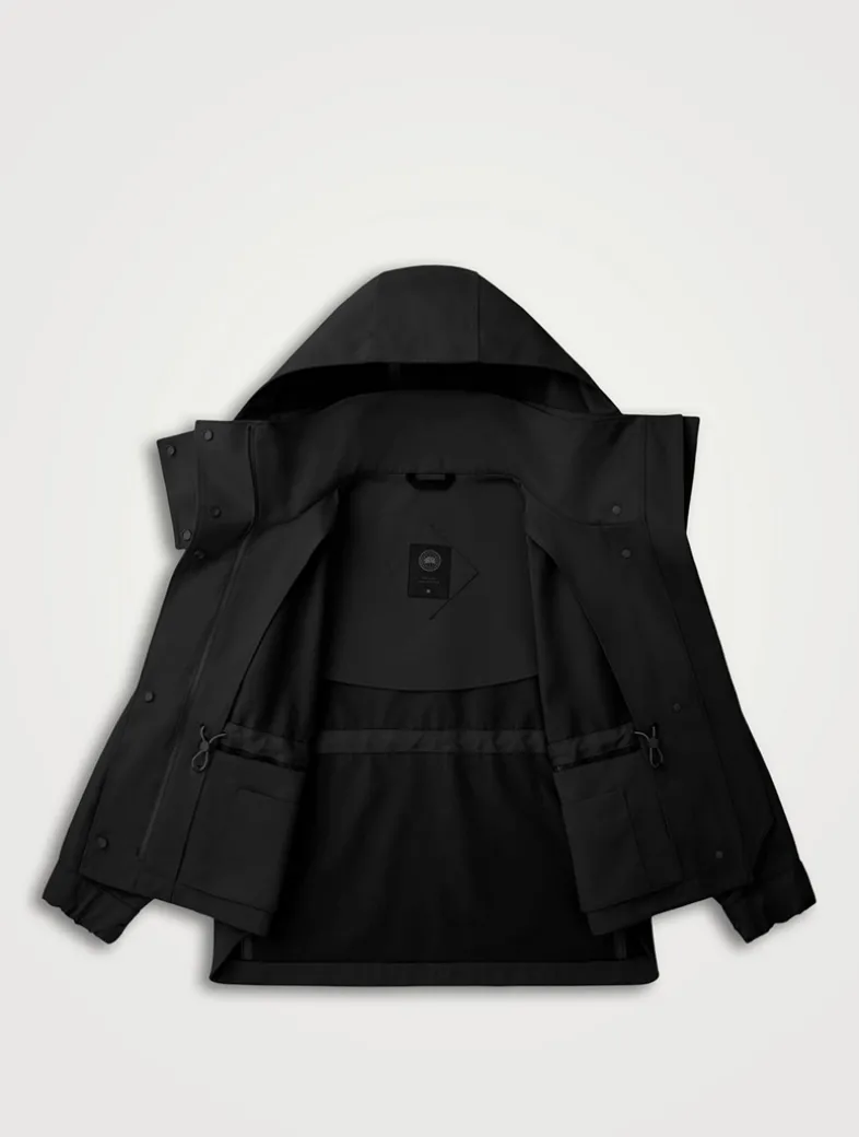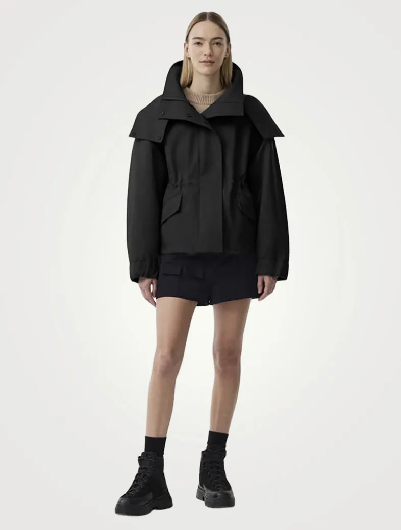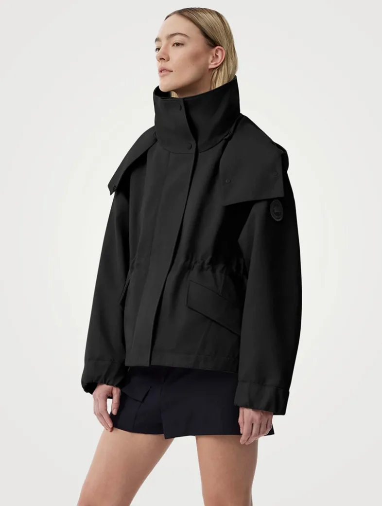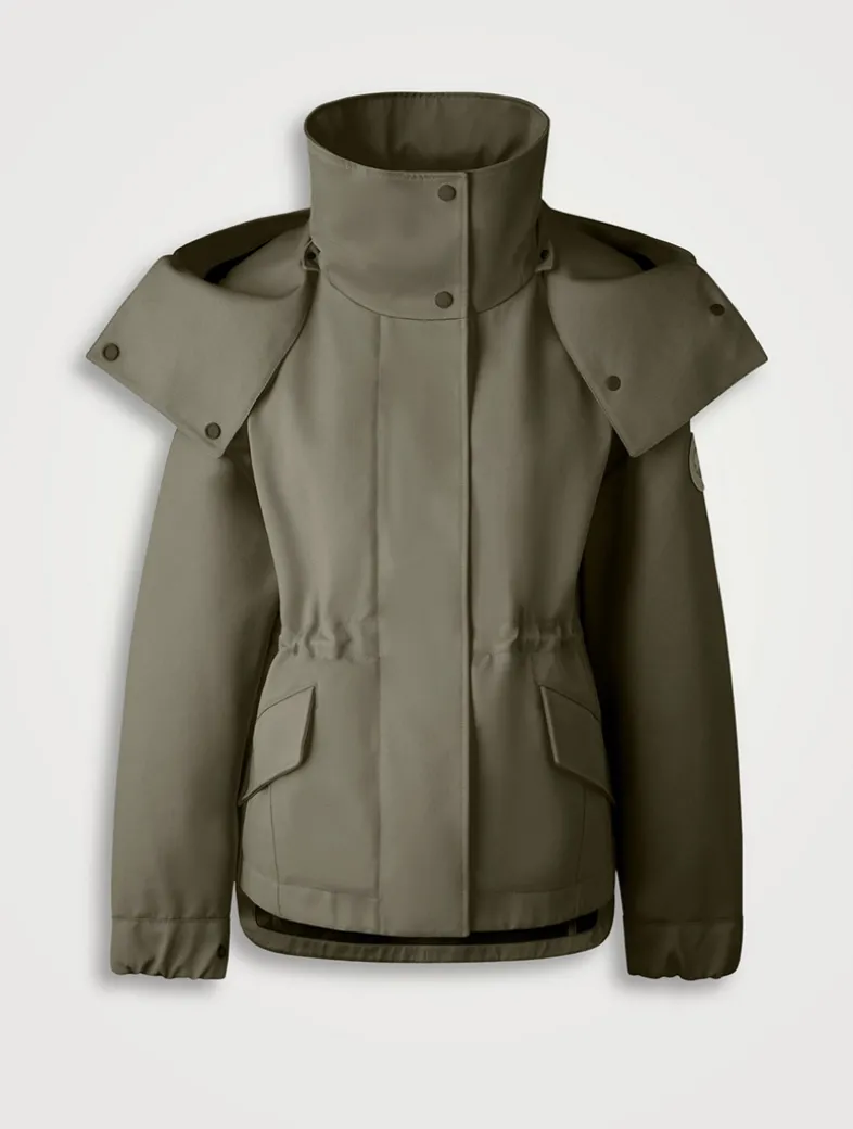 This oversized jacket is the perfect piece for transitional months. It has a heavyweight canvas construction with a high collar and a removable hood. Multiple interior and exterior pockets complete the utilitarian look.