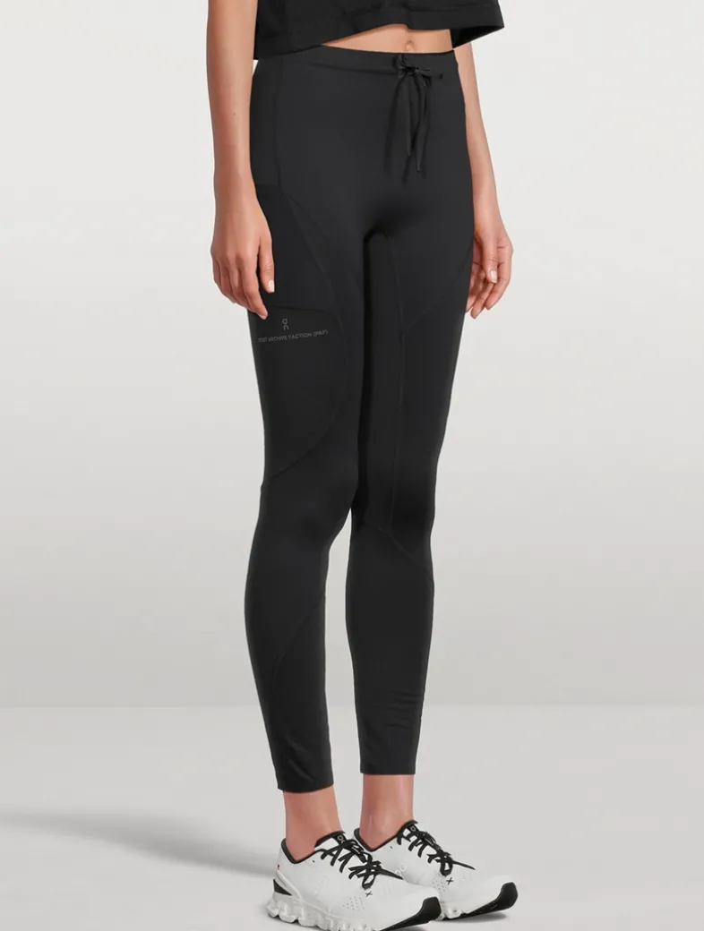 This collaboration fuses Post Archive Faction’s minimal design with On’s performance heritage. These performance tights have a bonded waistband and hems. A side pocket on leg and back pocket with separate compartments completes the functional look.