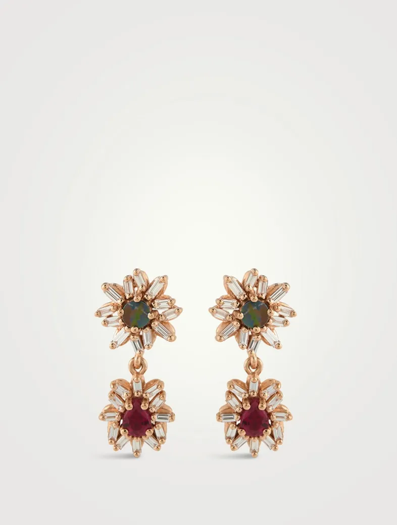 One-Of-A-Kind 18K Rose Gold Opal, Ruby, Diamond Doublet Drop Earrings