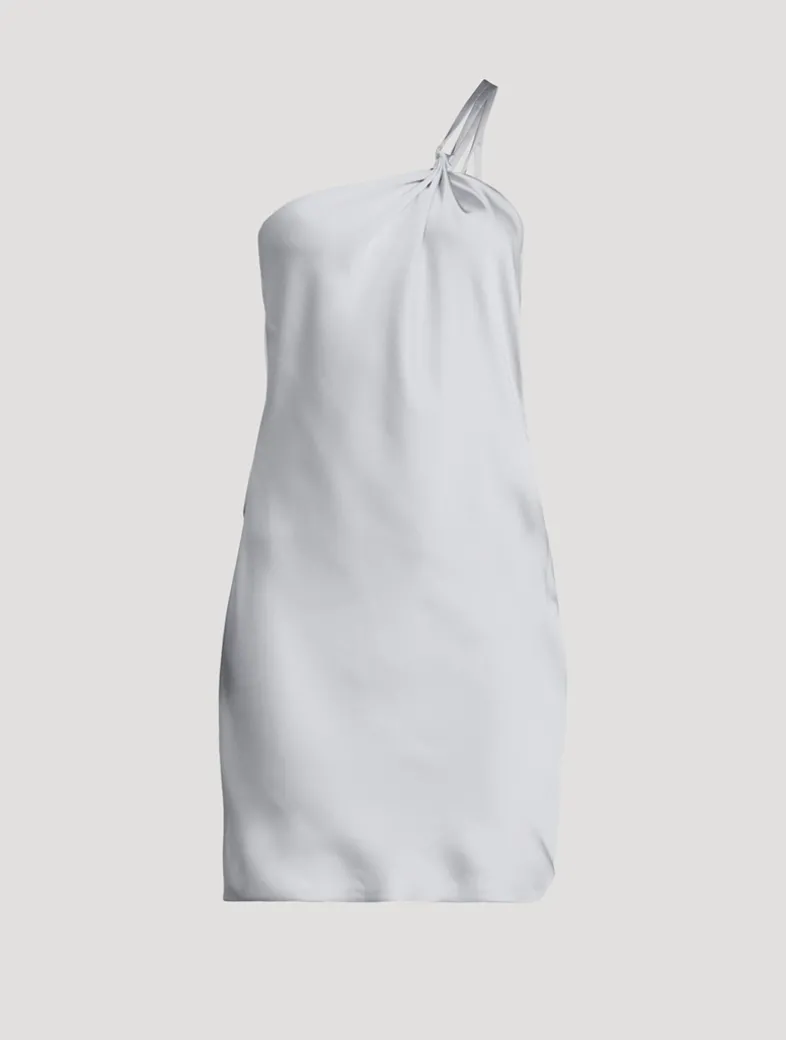 Crafted of silky satin, this mini has a bias-cut design that skims your curves. It has a flattering one-shoulder neckline with a single strap and a daring open back with a draped detail.