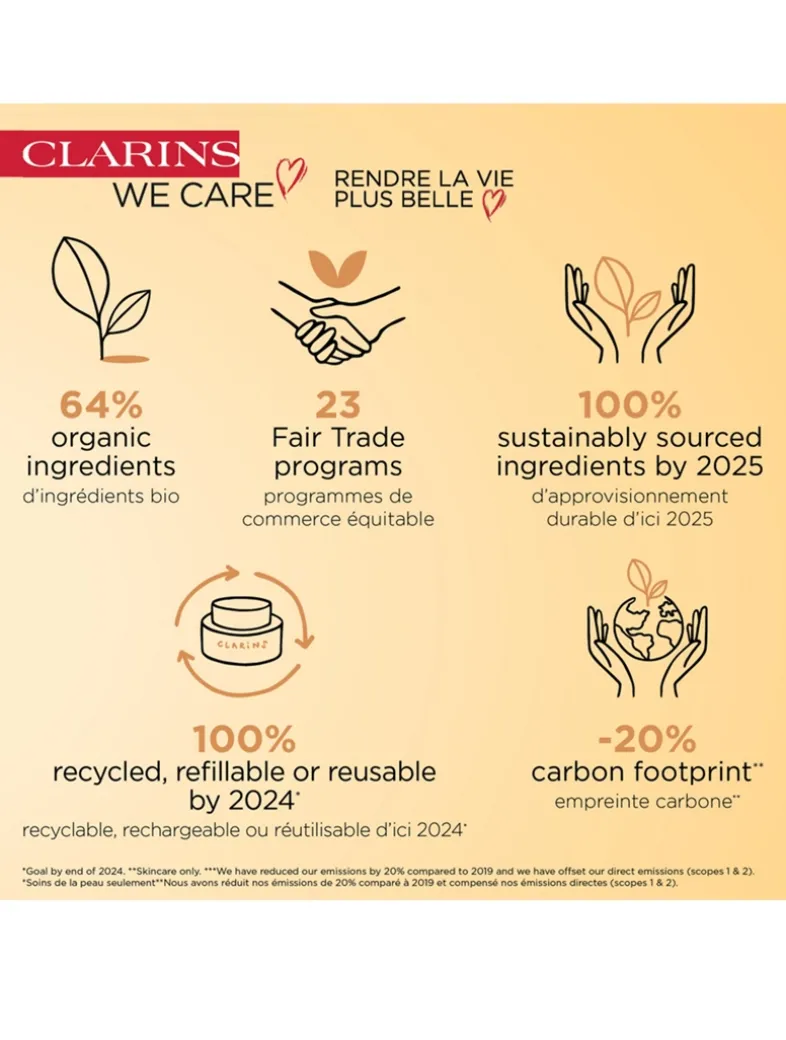 To minimize its environmental footprint, Clarins has redesigned this product in an even more eco-friendly tube with a lighter capsule.