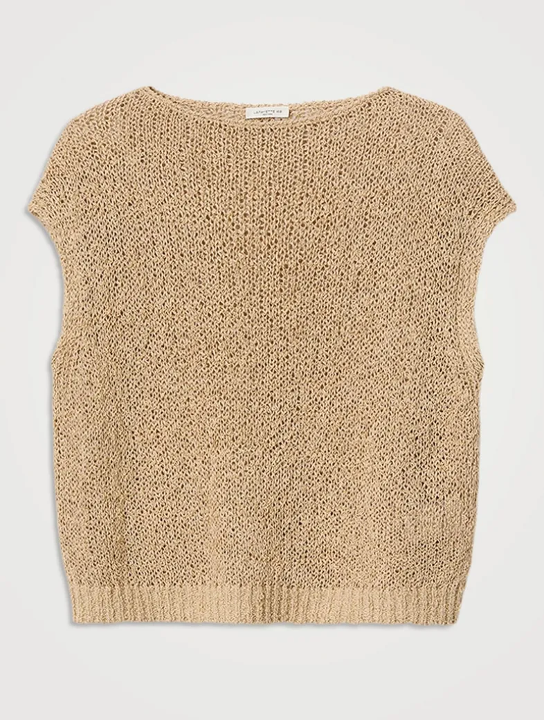 Draping the shoulders in a loosely knit, open-stitch design, this boxy shell is crafted from Japanese cotton and silk-blend yarn with a looped bouclé effect and cool handfeel. The easy, relaxed shape features a bateau neckline with a crochet-edged finish.