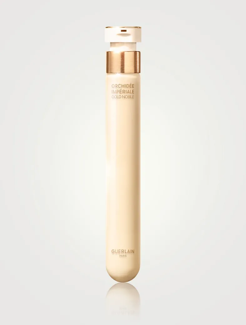 Thanks to the concentrated powers of the Gold Nobile orchid, the new technology at the heart of Orchidée Impériale Gold Nobile skincare helps to restore the biophoton emission by skin cells of a young cell on an incredibly small scale to accelerate skin’s visible rejuvenation. The refillable serum visibly amplifies 10 signs of youth and revives 6 factors of light, leading to visibly younger skin. Composed of 95% naturally-derived ingredients, its fresh and light ultra-fine texture melts into skin, instantly enhancing its beauty.