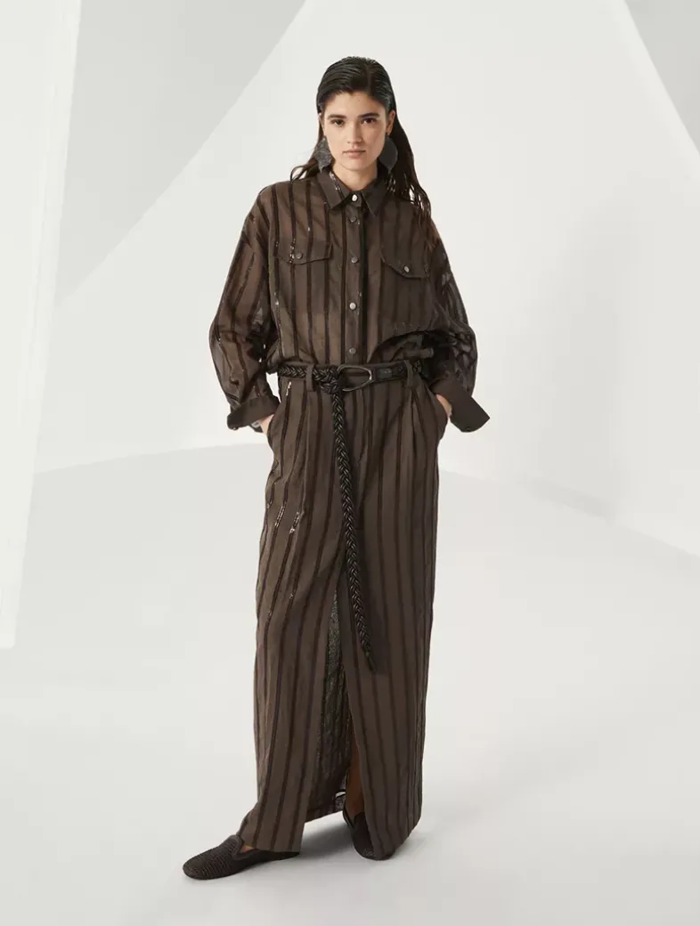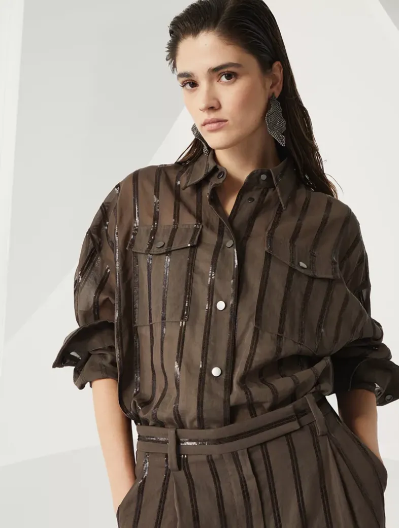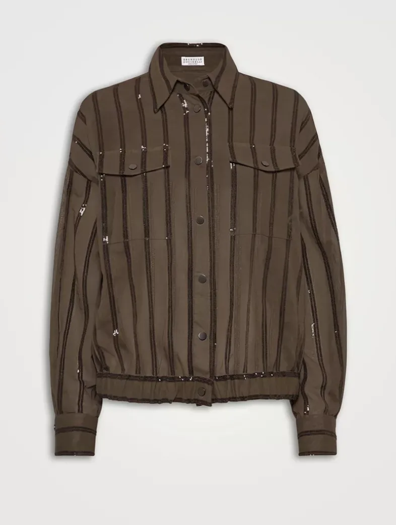 Cotton organza outerwear jacket with dazzling stripe embroidery