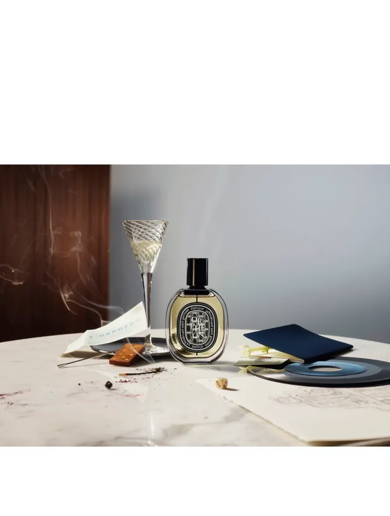 Paris in the early 60s. The Saint-Germain quarter was alive with the rhythm of all-night sessions in jazz clubs and artistic encounters. People would discuss the world, dance and laugh in a warm atmosphere as vibrant as it was elegant … Orphéon was one of the bars, filled with joyful effervescence, where the three founders of the nearby diptyque boutique liked to meet. Today, paying tribute to this era and to creative friendships, the bar is immortalised in the olfactory portrait that bears its name: Orphéon. Freeze frame: curls of tobacco smoke mingle with powdery trails of blusher, lingering on burnished wood. At the heart of the composition is the atmosphere, recognizable through the warmth of the tonka bean, the depth of cedar and the vivacity of juniper berries.