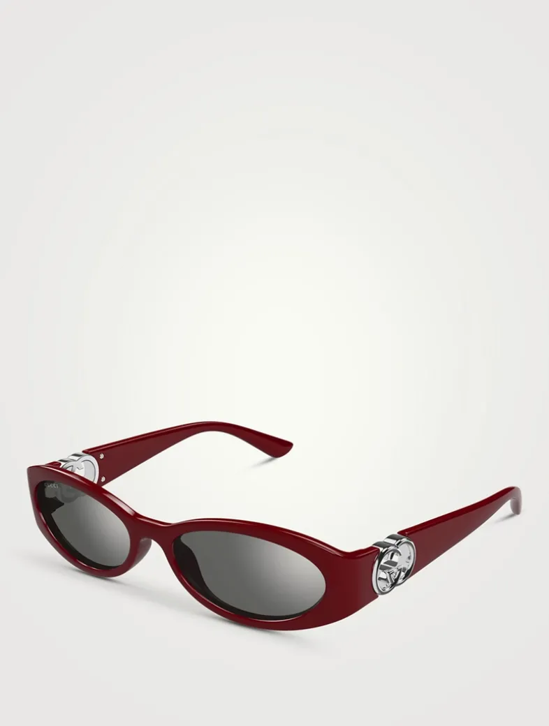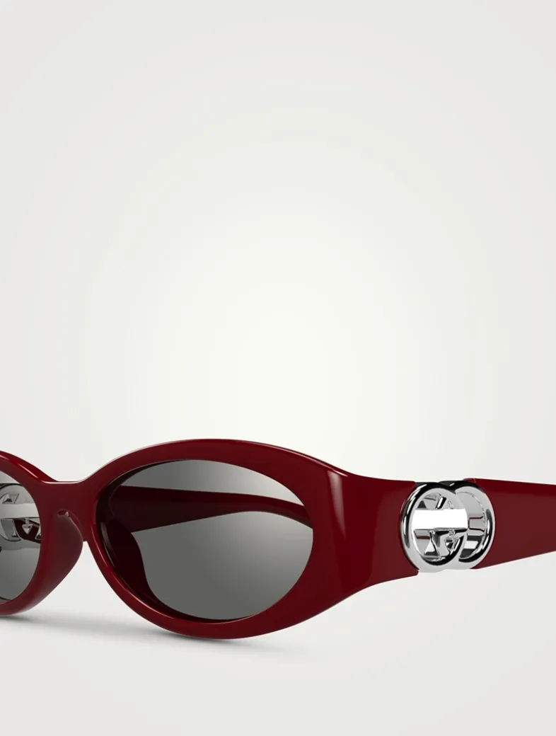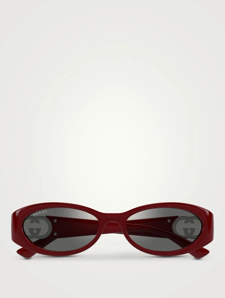 Crafted with an injection frame, this pair of sleek oval-shaped sunglasses is defined by round Interlocking G hinges in polished metal at the temples.