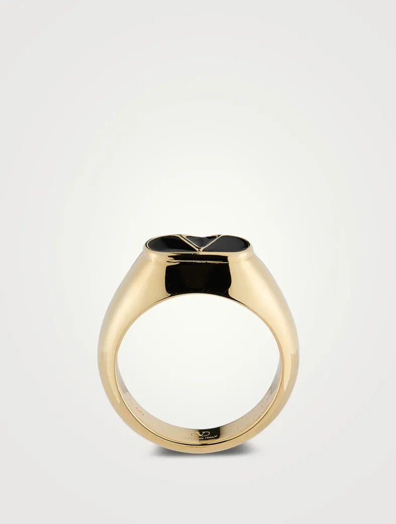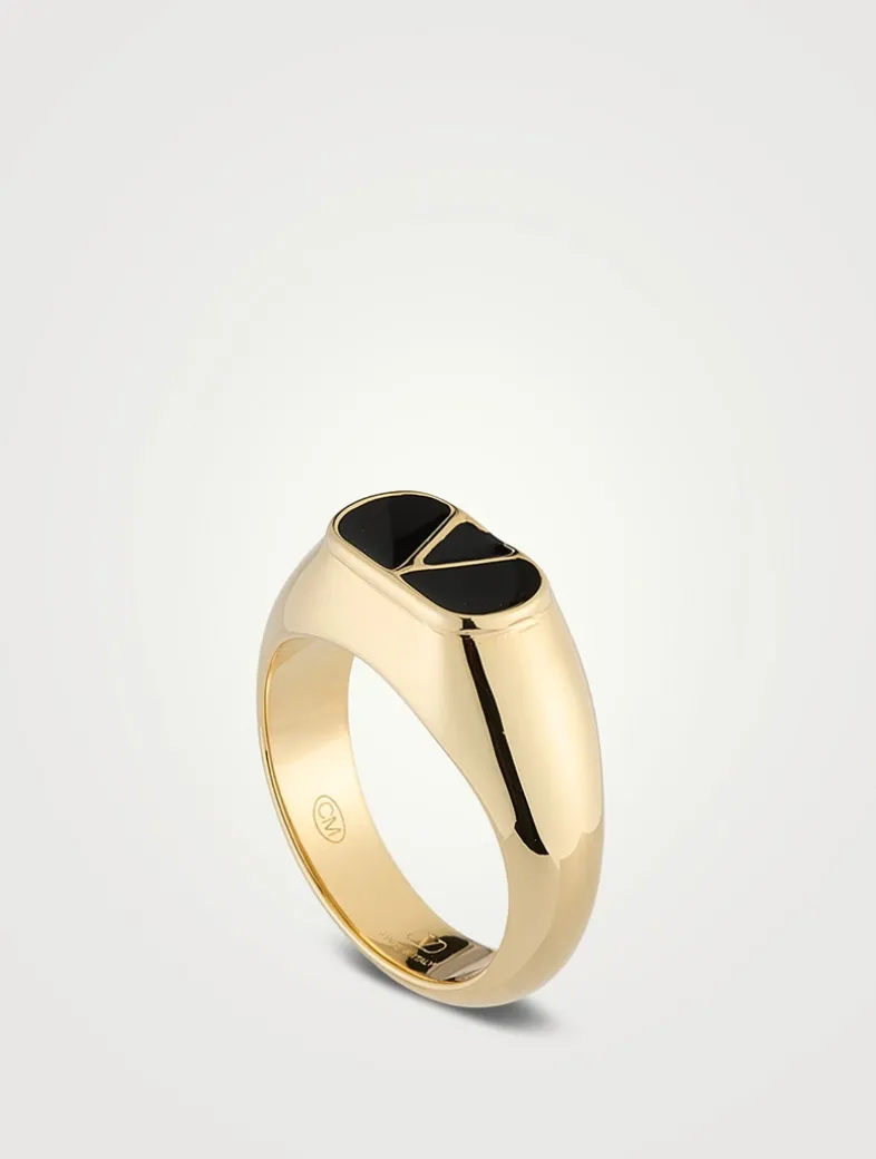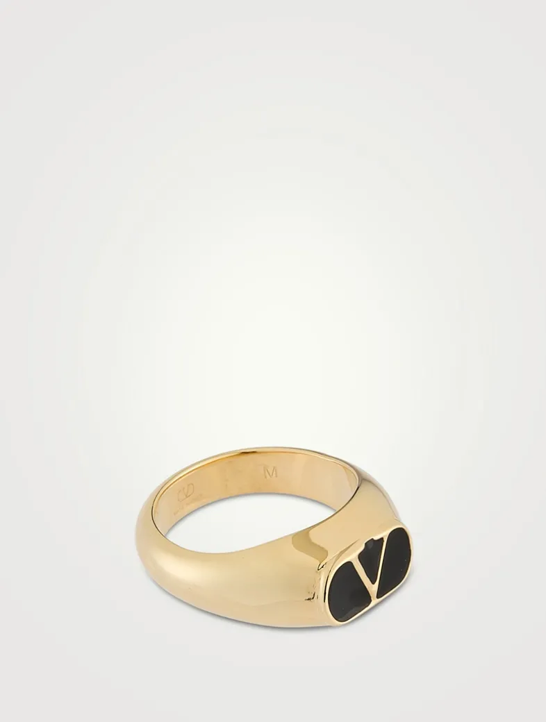Made in Italy with a golden finish, this sleek signet ring features an enameled VLogo.