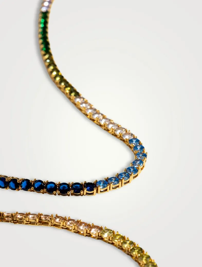 Multicoloured round cubic zirconias dazzle in this unique gold-plated necklace with a foldover closure.