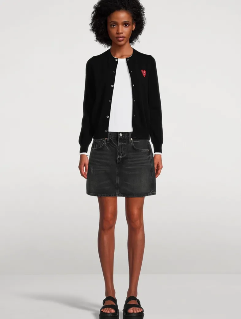 Exuding a refined sophistication with a playful finish, this crewneck sweater is knit from wool embroidered with a layered version of CDG PLAY’s iconic heart motif at the chest. It has a buttoned placket and ribbed trim at the collar, cuffs and hem.
