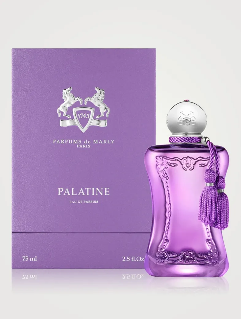 This empowering yet sophisticated eau de parfum revolves around a modern floral bouquet enhanced with fresh, fruity, and powdery notes. An opening of mandarin, bergamot and pear lead to a daring, contemporary violet petal. For a velvety sensation, the overall fragrance settles on musk and creamy sandalwood. Palatine encourages confidence, instilling a feeling of assertiveness, and freedom.