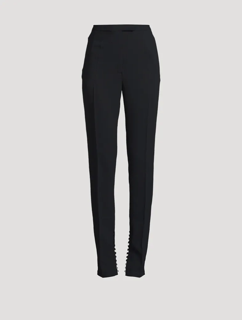 These tailored trousers are crafted from crêpe and cut to a slim-leg silhouette with covered buttons at the cuffs that can be used to create a flared hem.