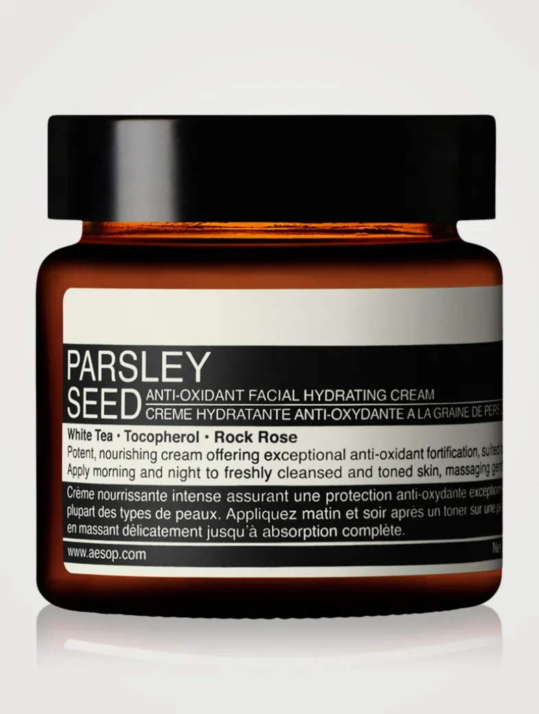 Aesop’s Parsley Seed Anti-Oxidant Facial Hydrating Cream is a richly emollient cream that offers exceptional anti-oxidant fortification for the skin. This potent, soothing moisturizer is formulated with emollient botanicals and anti-oxidant rich ingredients to fortify the skin and leave it feeling soft, supple and thoroughly hydrated. It’s suited to most skin types, other than sensitive.