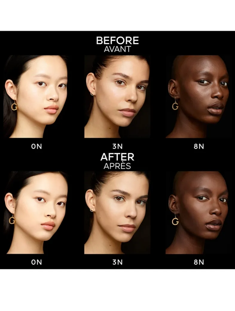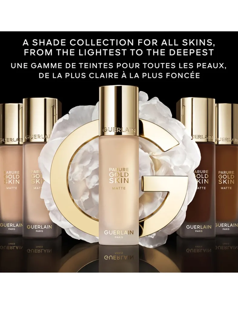 The Parure Gold complexion has embodied the ideal alliance of make-up and skincare for an unmatched youthful glow. Boasting an ultra-sensory texture, Parure Gold Skin Matte’s formula is 85% rejuvenating skincare-based, for a beautified skin, application after application. No-transfer technology lies at the heart of this new formula offering 24 hours infallible hold, a luminous matte effect with a velvety feel. A hint of pure 24-karat gold is associated to a duo of white peony extracts in a formula which instantly offers an exceptional complexion, and a more beautiful and luminous skin day after day. Meticulously designed to adapt to all skins, 18 shades from the fairest to the darkest are available for Parure Gold Skin Matte.