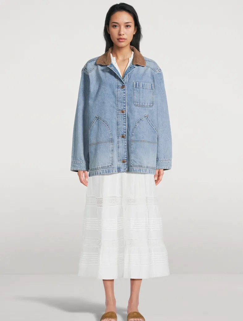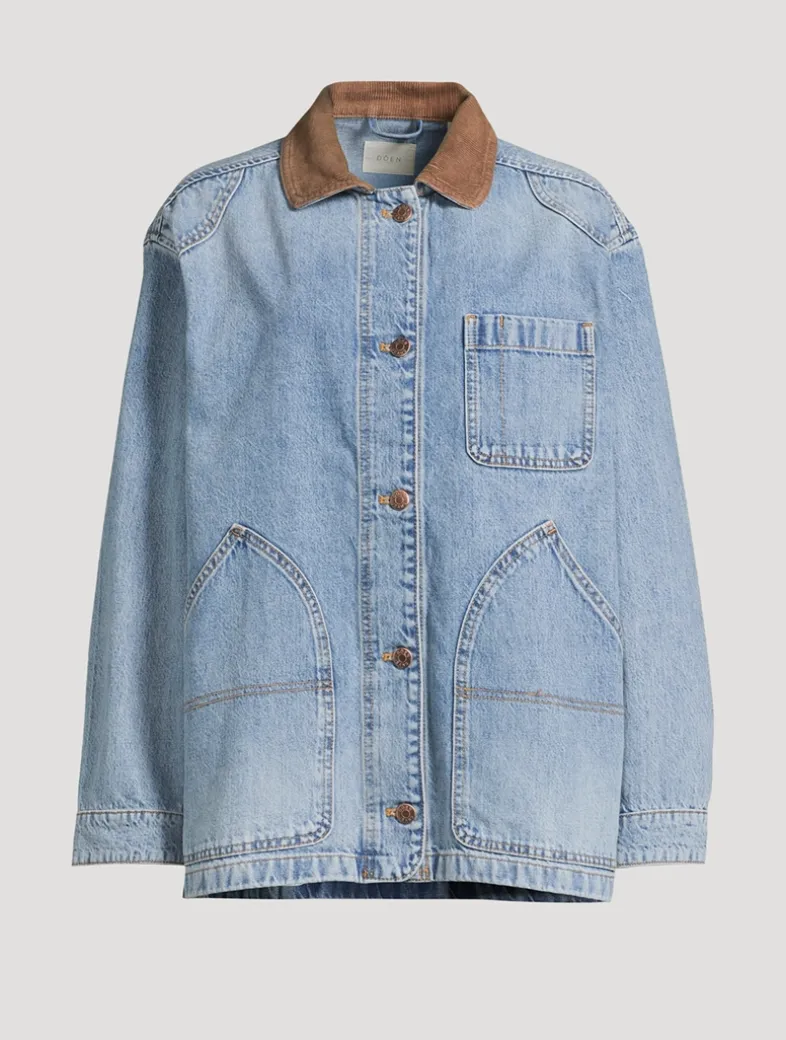 Crafted from vintage-inspired cotton denim, the Pascual recalls 1940s barn jackets. It features a slouchy, relaxed fit, custom DÔEN-branded copper buttons, and a contrast corduroy collar and inner cuff detail. For added utility, there are two roomy hip pockets and a chest pocket.
