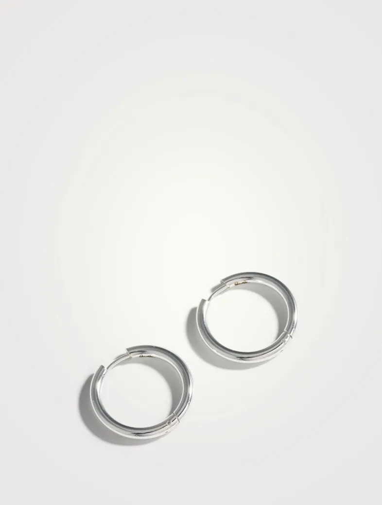 These snap-closure mini hoop earrings are designed for adding charms.