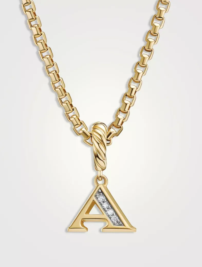 Pavé A Initial Pendant In 18k Yellow Gold With Diamonds
