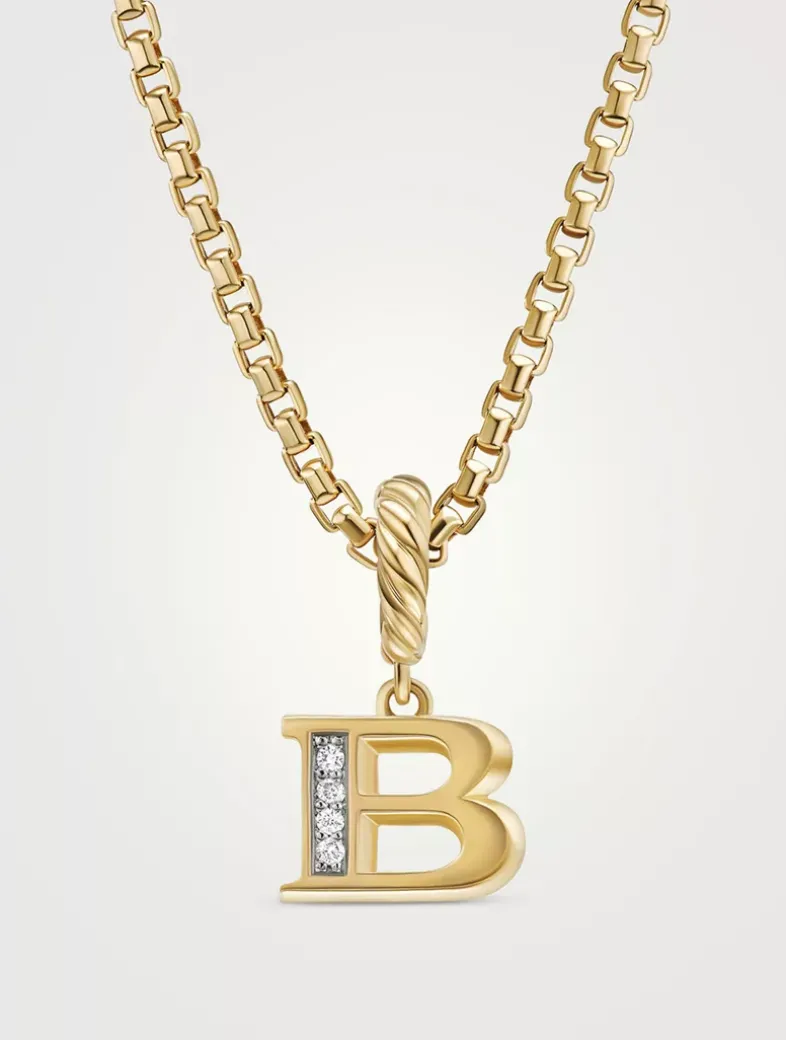Pavé B Initial Pendant In 18k Yellow Gold With Diamonds