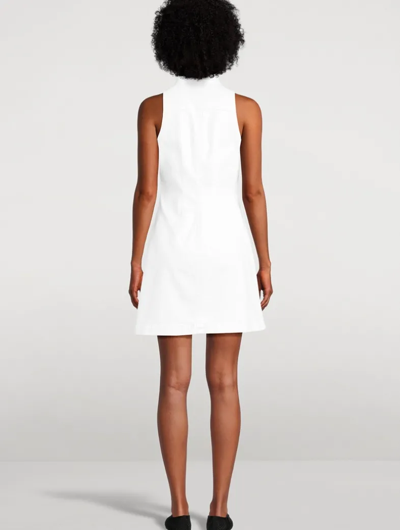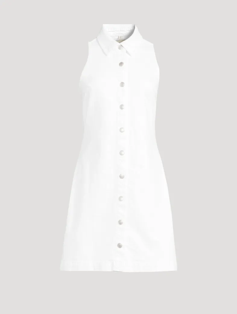 Payton is a sleeveless mini dress with a tailored silhouette featuring a point collar and front button closure. Crafted from denim made from a mix of cotton and recycled cotton with a hint of stretch.