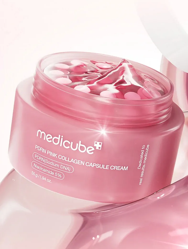 Medicube PDRN Pink Collagen Capsule Cream is a hydrating moisturizer that helps improve the look of skin elasticity and radiance. Suitable for all skin types, this dermatologist-tested formula combines encapsulated collagen capsules with a lightweight gel base, featuring ingredients such as PDRN (polydeoxyribonucleotide), niacinamide, and hyaluronic acid—recognized for their skin-conditioning and brightening properties. The dual-texture design allows for a personalized blend of nourishment and hydration. With continued use, skin appears more supple, even-toned, and refreshed—an excellent choice for enhancing your daily skincare routine.