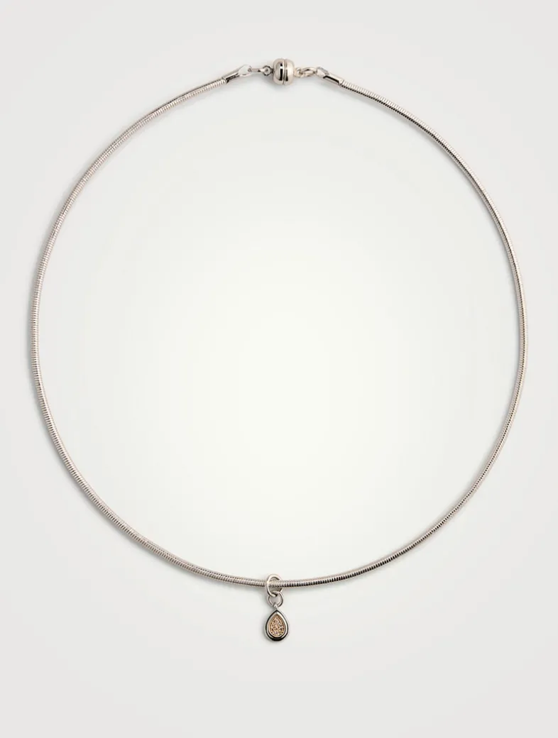 This snake chain necklace features a tear shaped stone charm. All Luv Aj jewellery is waterproof and tarnish resistant. Luv Aj uses Ion Plating, which is a Physical Vapor Deposition (PVD) process used to create durable, long-lasting finishes on metal. The base metal is brass, which then is plated with at least 0.1 micron of 14K Gold or Silver, plus e-coating which qualifies it to pass waterproof tests. Necklace is 100% nickel-free and cadmium-free.
