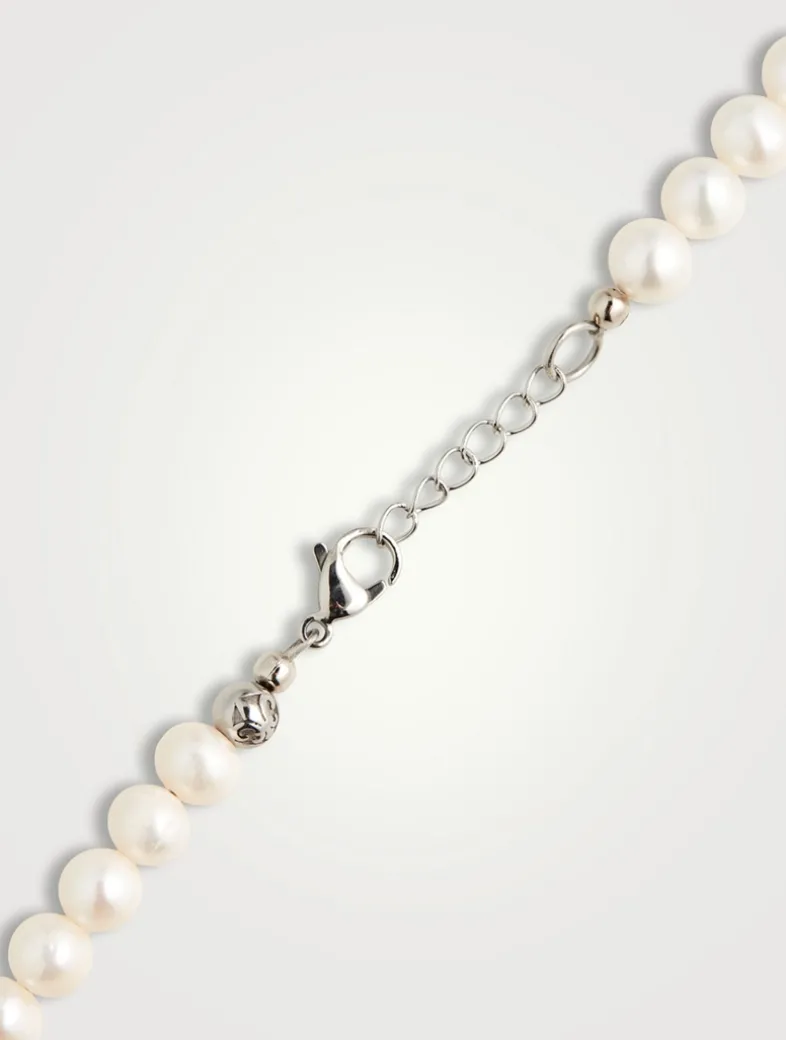 Strung by hand at NIALAYA’s LA studio from round lustrous pearls, this necklace is punctuated with a single smiley face bead.
