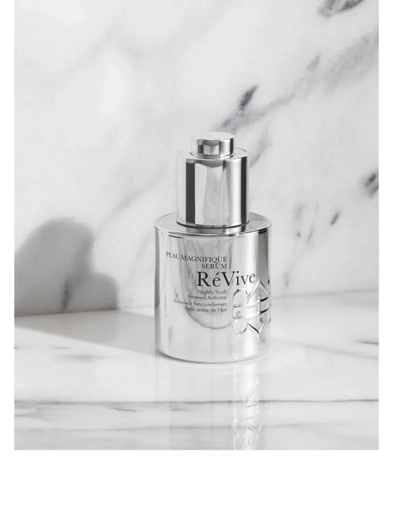 This breakthrough serum is the ultimate in potent, age-defying skincare. The advanced formula kick-starts skin renewal, resulting in dramatic benefits in as little as four weeks: it helps reduce fine lines, increase skin firmness, minimize the appearance of deep lines and restore facial fullness. The formula is powered by RÉVIVE’s signature Bio-Renewal, Bio-Firming and Bio-Volumizing proteins that are supercharged to amplify youth activating benefits. They work synergistically with a Quad Drone Delivery System to provide targeted age defying results. Designed as a powerful nightly serum it can also be used in between Peau Magnifique 28-day treatments.