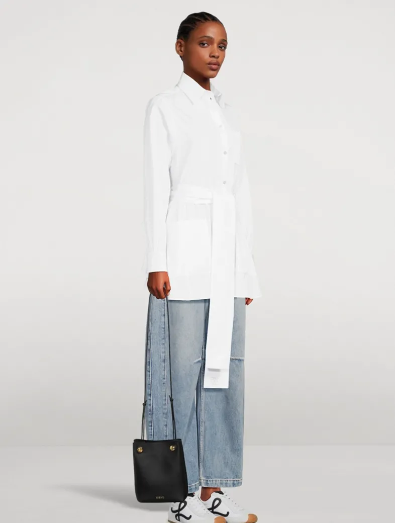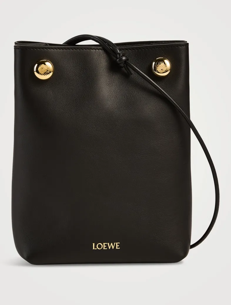 This slim pouch is crafted in smooth calfskin featuring a folded construction, a tubular strap, and a double signature Anagram Pebble. The interior has one pocket and a leather lining.