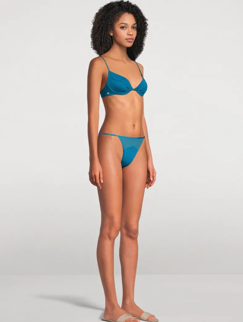 The Peep Show Bikini Bottom blends luxurious Italian swim jersey and Italian mesh for a flirtatious mix of coverage and allure. Adjustable straps at the hips allow for a custom fit.