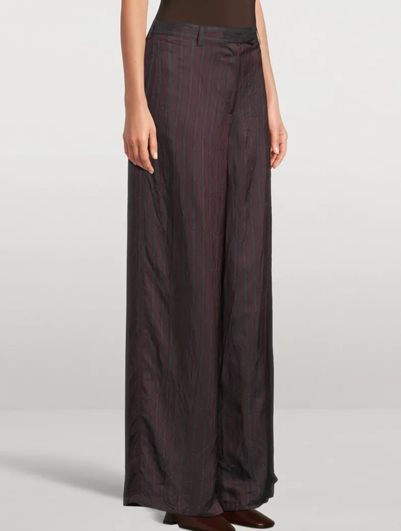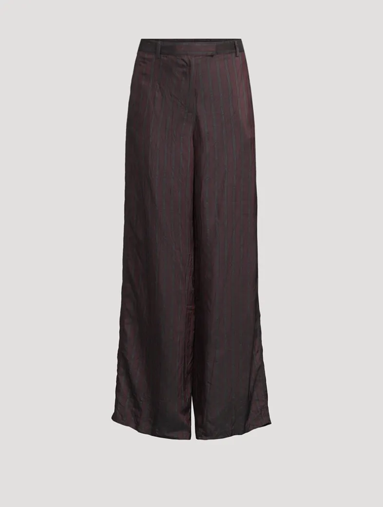 These wide-leg pants are crafted in striped cupro. Cut to a high-rise waist, they have side slit pockets, back welt pockets, and belt loops.