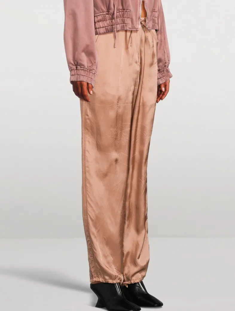Cut in a relaxed silhouette, these luxe satin trousers are topped with a drawstring waist and are finished with drawstrings at the cuffs that can be adjusted to alter the shape of the leg.