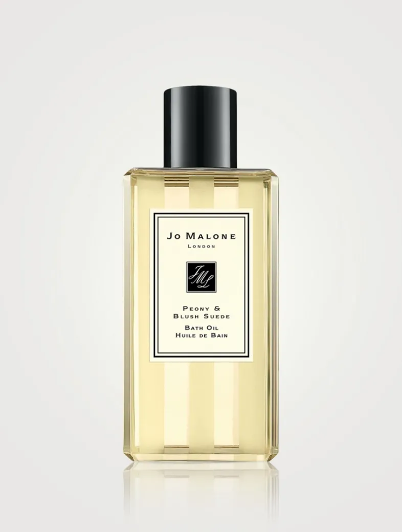 Jo Malone London’s Peony & Blush Bath Oil captures the delicate bloom of fragrant peonies, and subtle scent of soft, blush suede. Opening with juicy red apple and a bouquet of jasmine, roses and gillyflowers, the floral fragrance fills the air and mingles on skin even after the bath. Made with sweet almond, jojoba seed and avocado oils, the Bath Oil nourishes and conditions for smooth, soft skin.