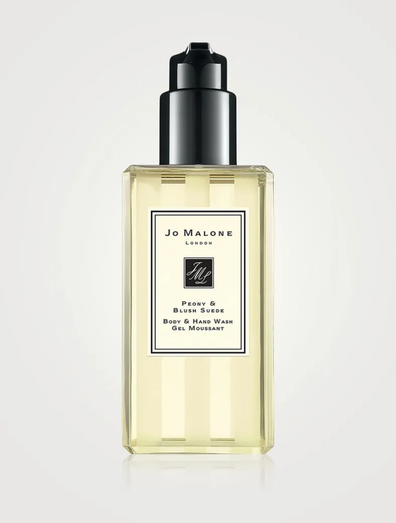 Jo Malone Peony & Blush Suede Body & Hand Wash is the essence of charm. Peonies, Red Apple, Jasmine, Rose and Gillyflower mingle to create a luxurious and seductive scent. With its luxurious lather and revitalizing fragrances, the body and hand wash refreshes and conditions the skin, leaving it deliciously scented.