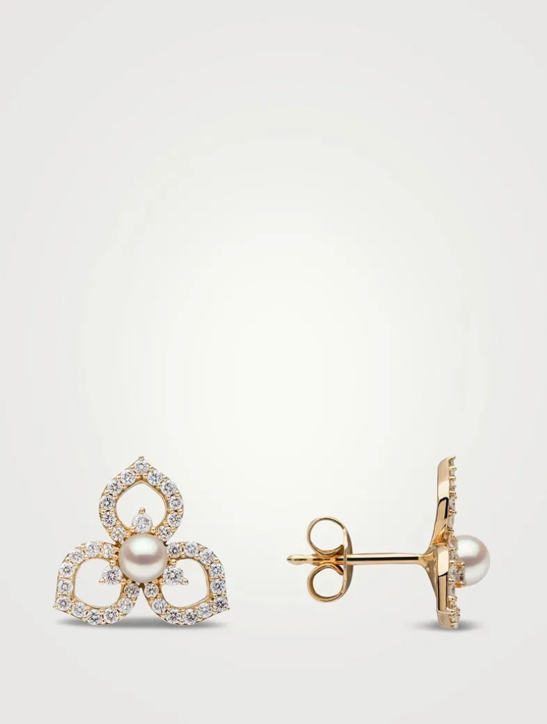Part of the Petal collection, these earrings express the wonder of a flower in full bloom. Luminous Akoya pearls are surrounded by scintillating diamond petals, making these earrings both whimsical and elegant.